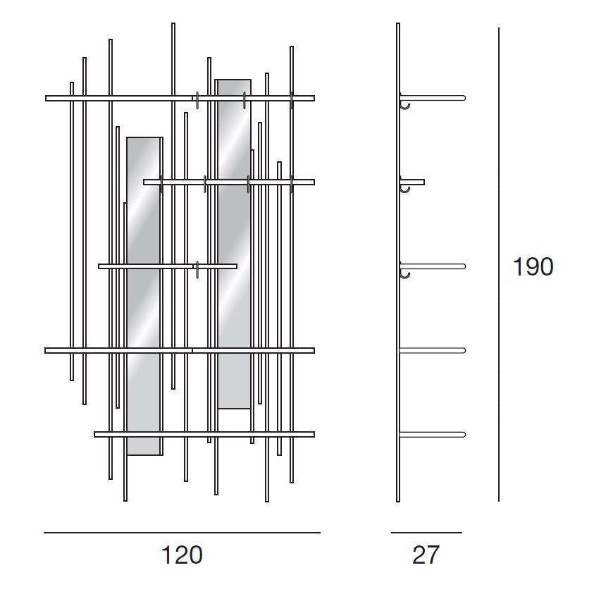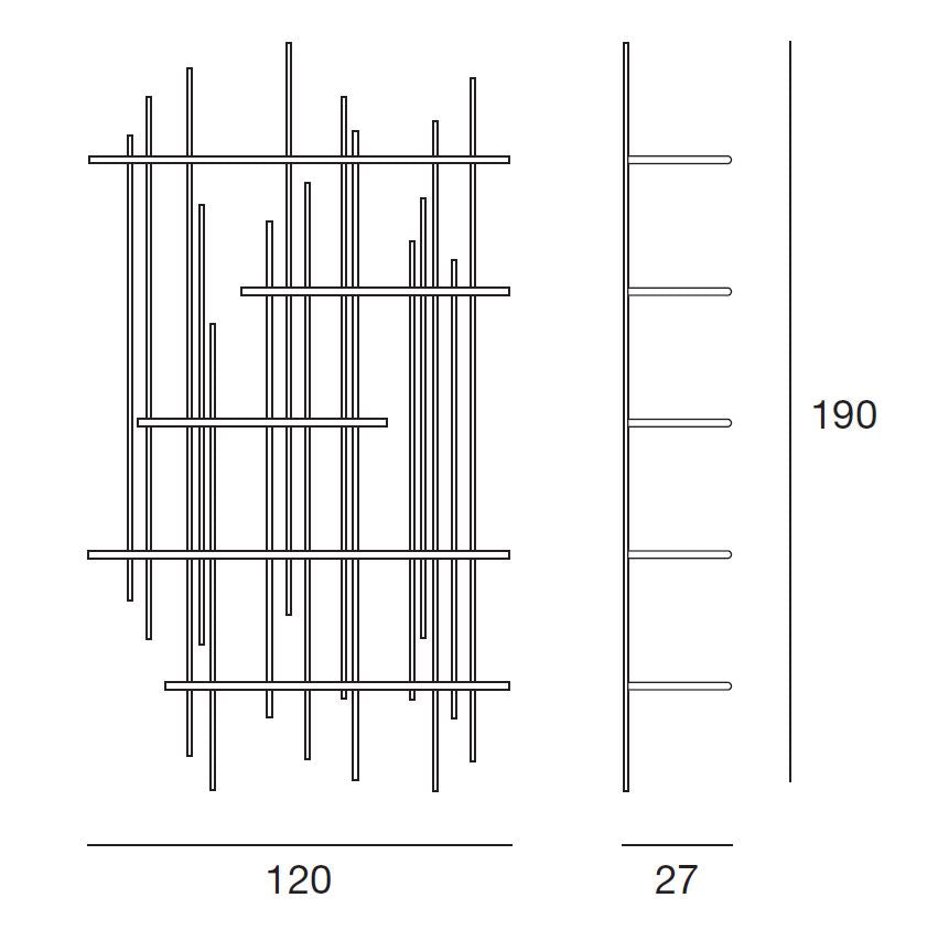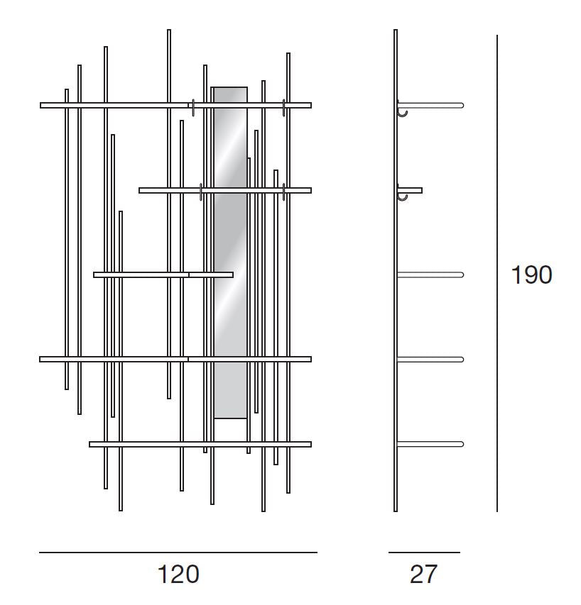 Tube este o bibliotecă din metal cu un design original, ideală pentru a fi folosită singură sau în compoziții cu diferite elemente. Poate fi echipata cu oglinzi si rafturi din lemn care pot fi pozitionate la diferite inaltimi.