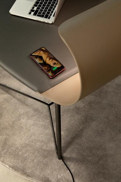 Măiestria prețioasă și tehnologia inovatoare sunt combinația care caracterizează biroul Surf, cu încărcător wireless integrat în suprafață, care face posibilă încărcarea telefonului mobil prin așezarea acestuia pe birou. Surf, cu o linie dinamică distinctivă care evocă un val, este îmbrăcat în piele groasă și echipat cu lumină reglabilă pentru a regla intensitatea fasciculului de lumină. În plus, blatul mare pentru PC-uri, cărți sau notebook-uri face din acest birou o masă laterală ideală pentru toate nevoile de acasa, combinând funcționalitatea și stilul, atât acasă, cât și la birou.