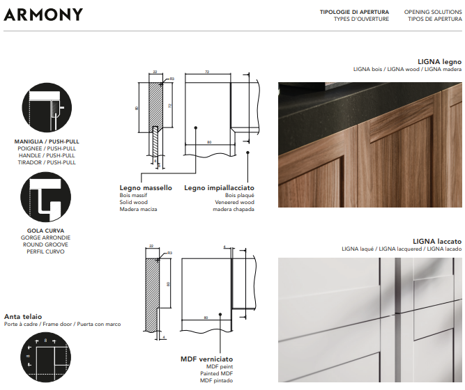 Materialele sporesc frumusețea contrastelor izvorâte din lemnul feliat și solid selectat cu grijă, dar este și rezultatul unei producții de înaltă tehnologie care asigură stabilitate în timp.