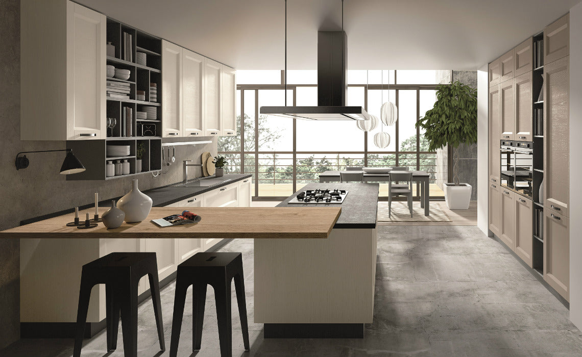 O gamă largă de finisaje satisface toate gusturile, permițând crearea unor compoziții diferite, cu forme care alternează spații închise și deschise, peninsule și blaturi de gustări care îndeplinesc toate cerințele de spațiu și stil.