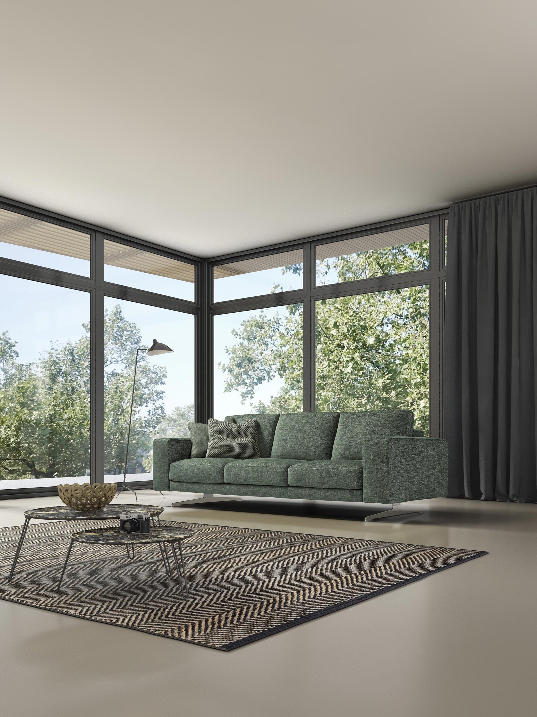 Cardiff este o canapea cu două sau trei locuri disponibilă și cu un fotoliu modular coordonat cu soluție peninsula, șezlong și pouf pentru combinații care se potrivesc bine dimensiunii camerei și stilului mobilierului. Disponibil cu picioare din oțel lustruit, nichel negru și bronzat.