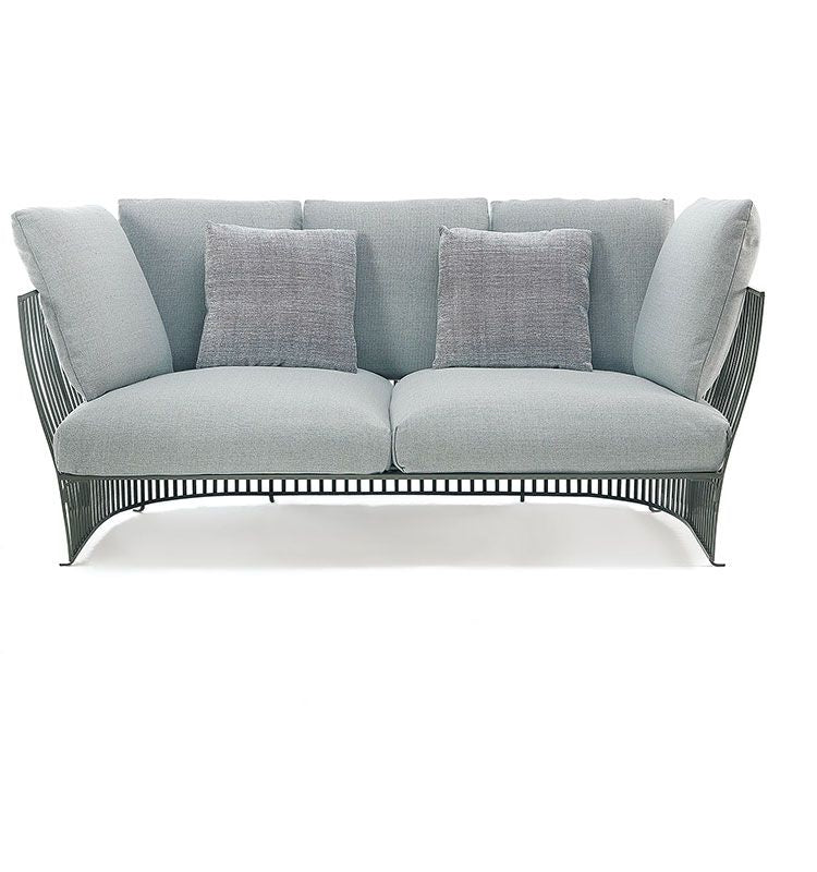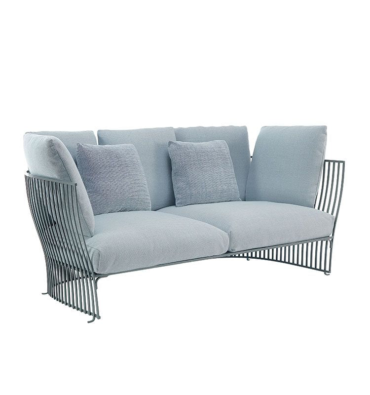 Canapea moale si pufoasa, cu forme pline atragatoare, cu structura din aluminiu disponibila in mai multe culori si perne din tesatura acrilica disponibila si acestea in mai multe culori.