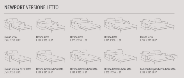 Liniara: L.225 cm P.92 cm H.93 cm