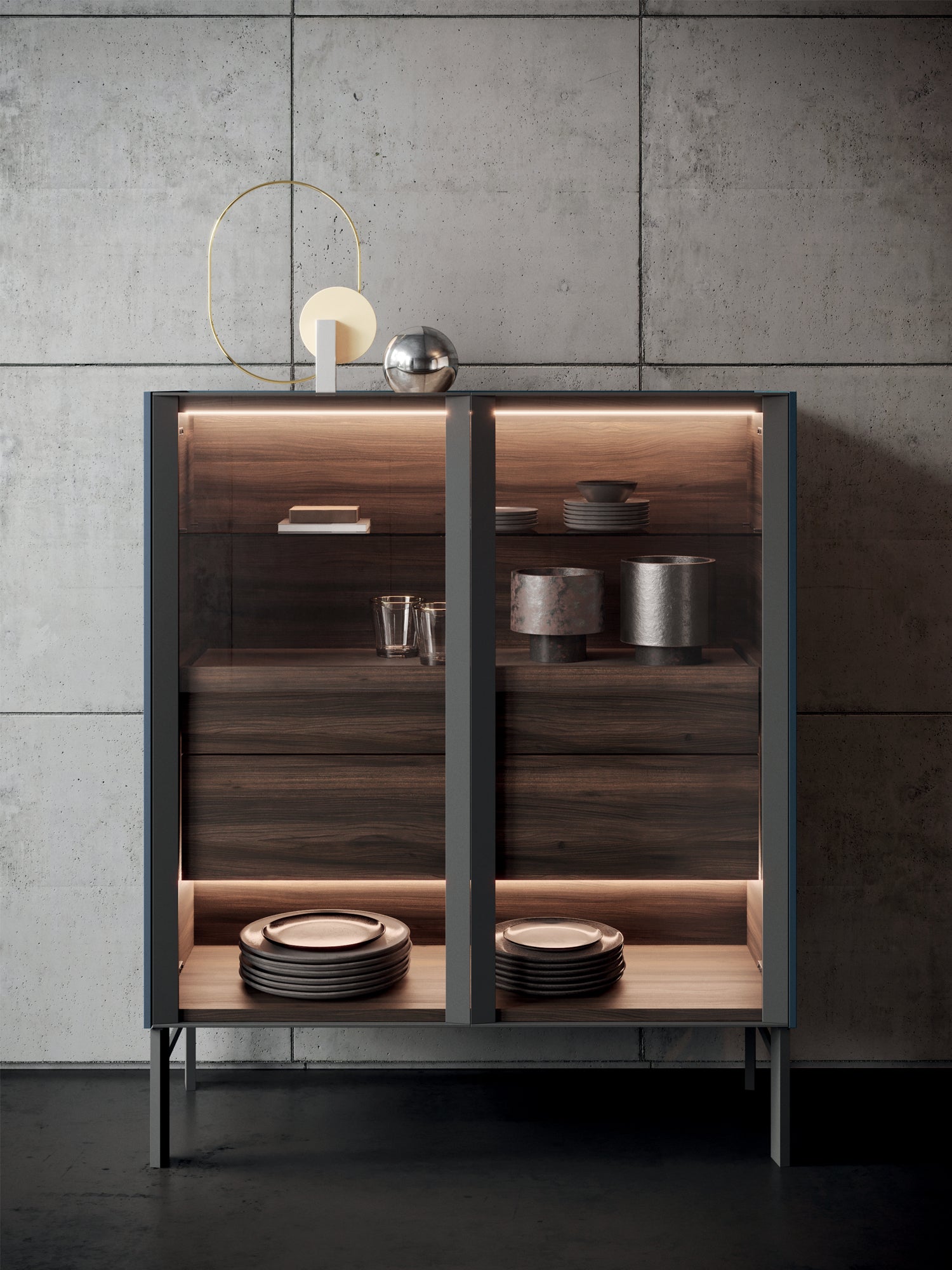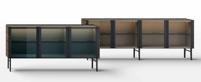 Bufetele Arya pot fi echipate suplimentar cu iluminare interioară opțională. LED-urile integrate pe capacele structurale ale bufetului sunt întotdeauna echipate cu un comutator ON | OFF fixat pe partea laterală a carcasei interne.