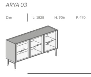 Comoda pentru living Arya cu structuri din marmură, lemn și sticlă. Este compusa din sertare cu separatoare interne pentru o organizare ordonată. Un bufet înrămat, hotărât și rafinat. Designul său se potrivește perfect în orice mediu, de la clasic la metropolitan, disponibil în trei versiuni: Arya 01, Arya 02 și Arya 03.