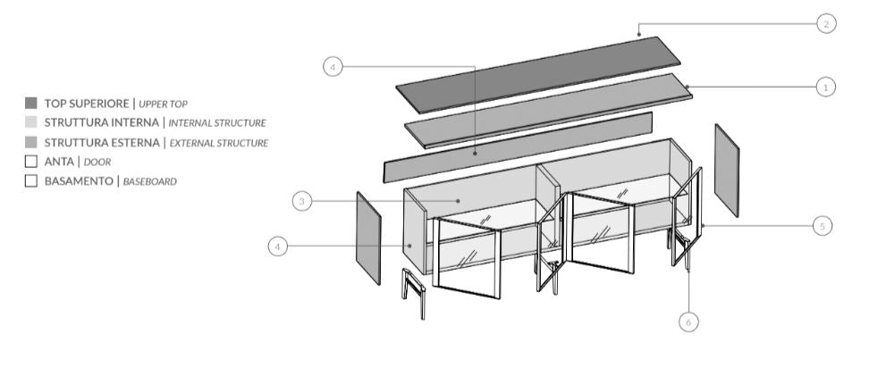 Panourile laterale și din spate reprezintă carcasa bufetului si poate fi gestionat cu finisaje diferite fata de cel al structurii interne.