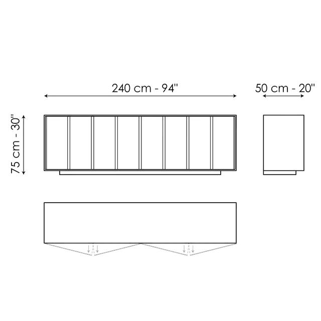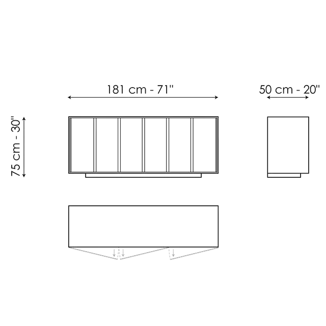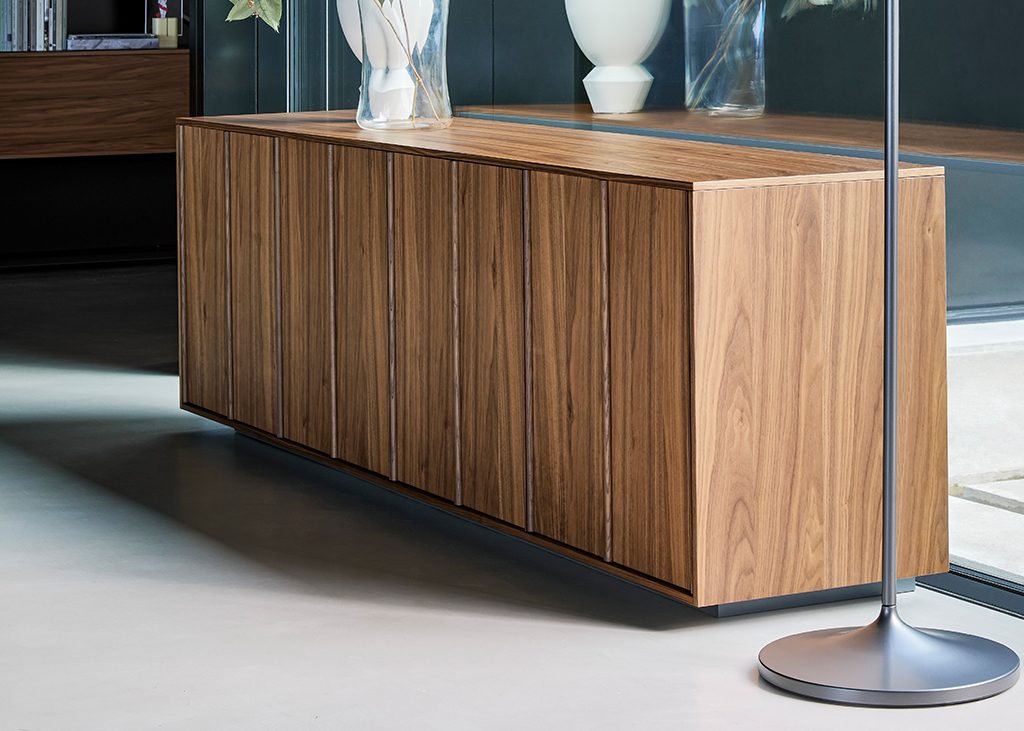 Așa cum sugerează și numele, principala caracteristică a elegantului bufet Backdrop de Alain Gilles este tăietura verticală a ușilor, care evocă o senzație de calm, datorită repetiției sale pe întreaga lungime. Designul acestei piese de mobilier este bine structurat, inspirându-se din fațadele clădirilor moderniste: liniile verticale ascund canelurile folosite pentru deschiderea ușilor. Rama care definește bufetul este ușoară și trece aproape neobservată, concepută pentru a accentua discret și elegant regularitatea elementelor frontale. Bufetul Backdrop este disponibil si în nuc Canaletto.