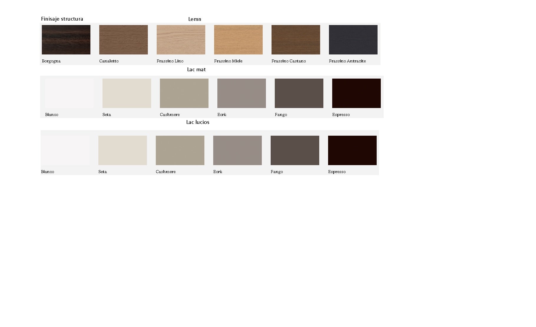 finisaje si combinatii, colectia include noptiere cu sertar simplu sau dublu, stivuibile