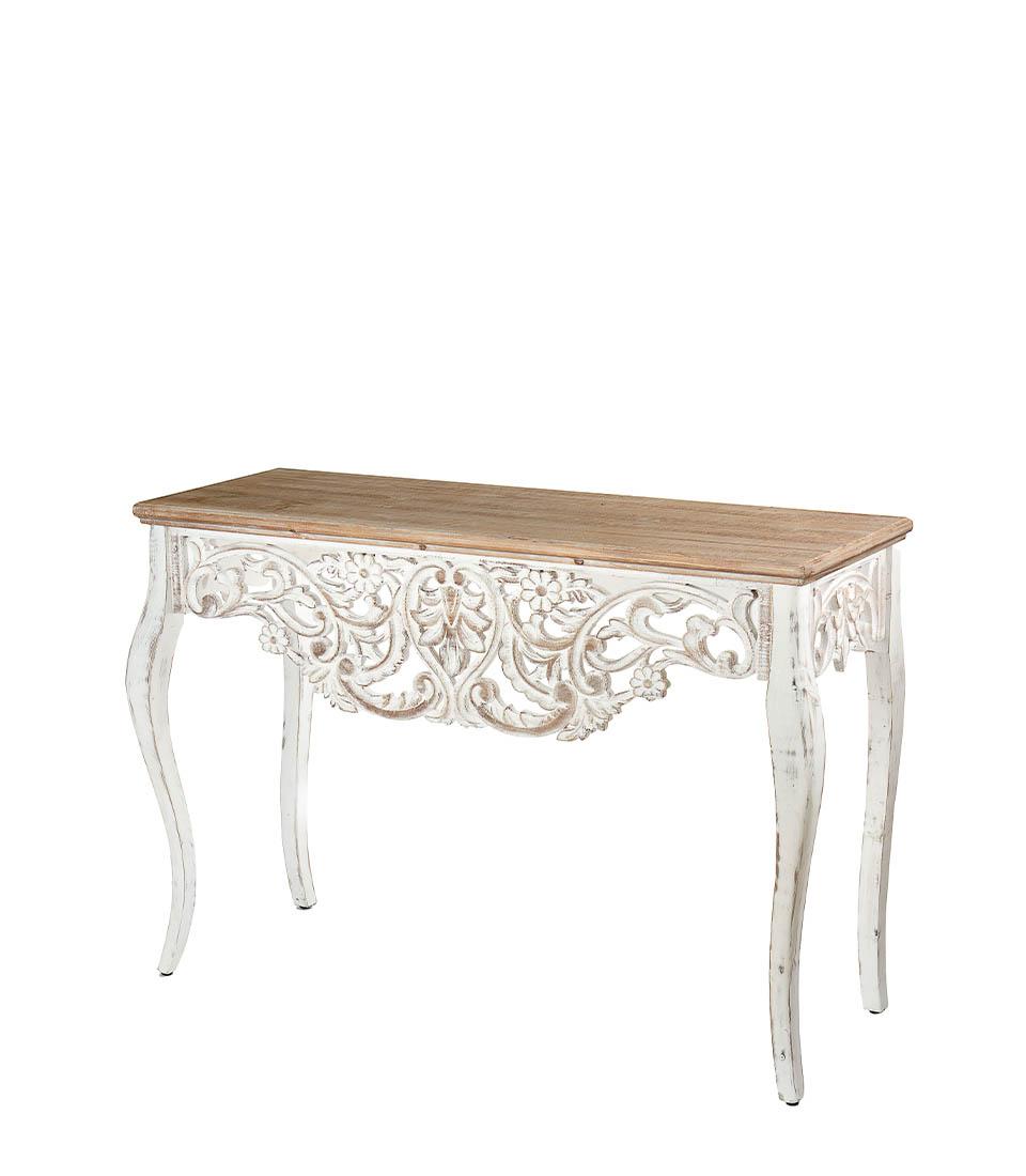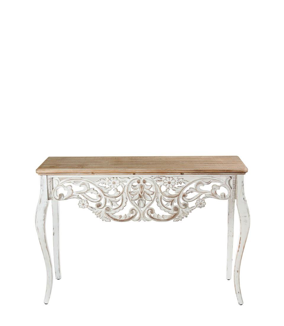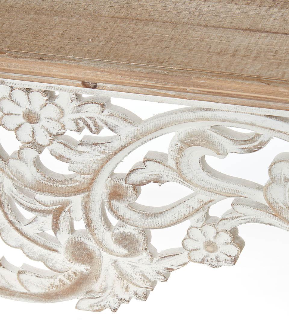 Consolă din lemn cu un efect deosebit de antic pentru cei care doresc să-și completeze mobilierul cu un element cu o aromă șic. Perfect pentru a se combina cu oglinda inspirată din Țara Modernă pentru a oferi continuitate. estetică și un stil boem pentru camera ta de zi.