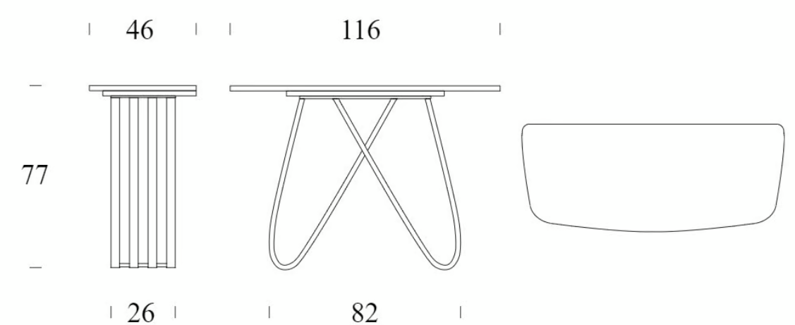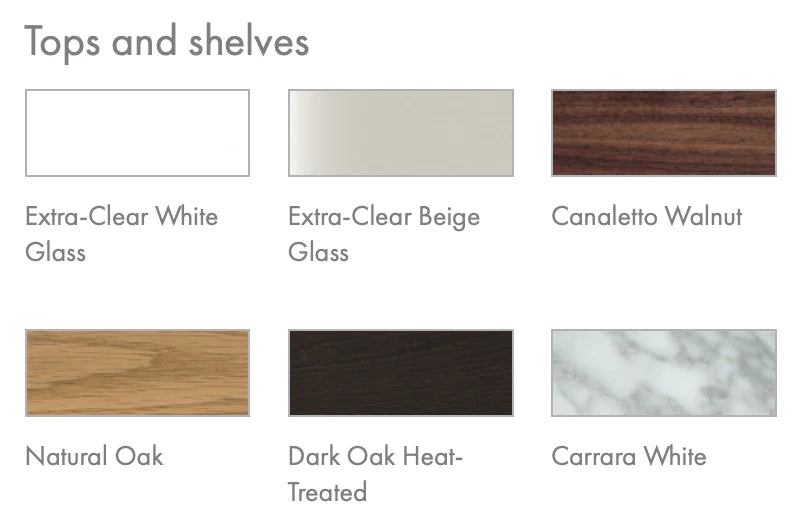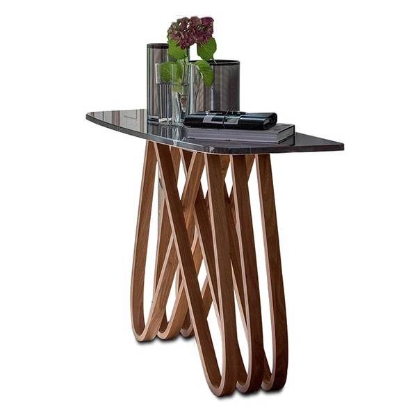 Baza curbată din lemn Arpa și stilul său rotund sunt posibil și mai evidente în această versiune de consolă. Culorile clasice ale lemnului Tonin Casa – nuc Canaletto, stejar închis la culoare și alb mat – se întâlnesc cu blaturi din sticlă extra-albă. Există, de asemenea, versiuni de marmură, fie cu marmură albă lucioasă de Carrara, fie cu marmură neagră lucioasă Marquinia.