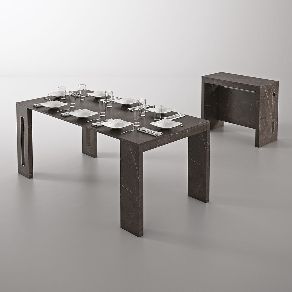 Consola extensibila cu design modern, disponibila in doua finisaje ce imita marmura.