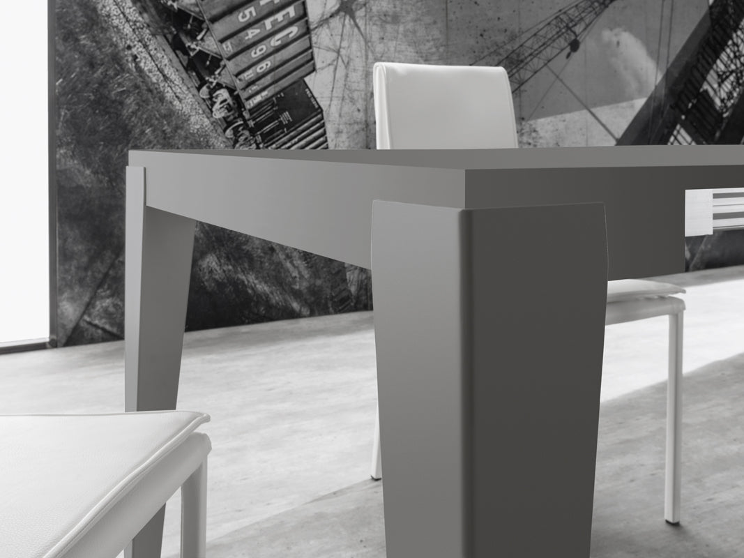 Masa consola extensibila, cu mecanism telescopic din aluminiu, structura, blat si extensii din melaminat, completata cu geanta extensibila.
