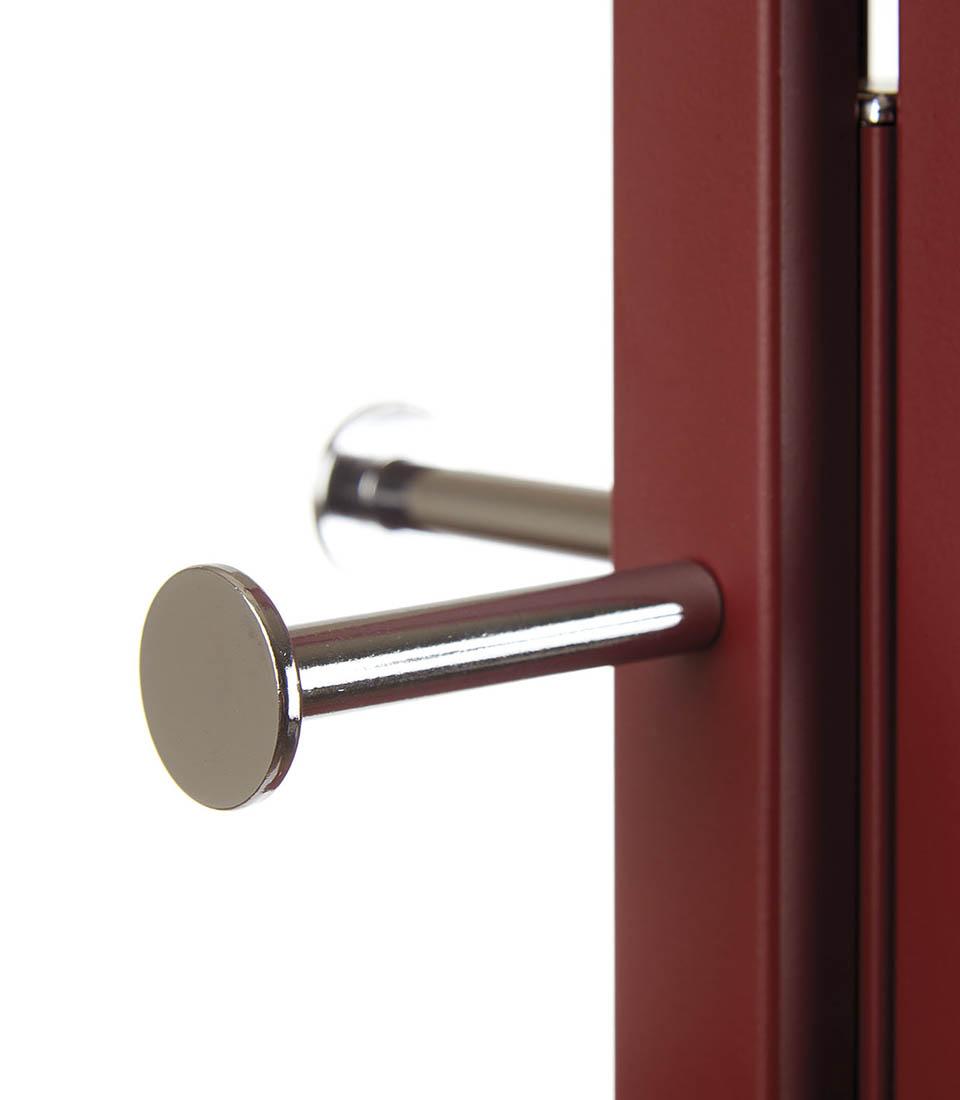 Cuier din metal roșu Merlot. O piesă de mobilier urban cu o eleganță minimă, perfectă pentru cei care iubesc designul esențial și contemporan. Disponibil și în varianta de culoare antracit.