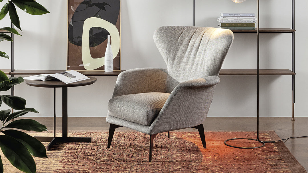 Fotoliul Lovy are o formă semi-ovală, care invită la conversație și creează mișcare din punct de vedere vizual. Corpul este tapițat cu material detașabil; baza metalica este disponibil în numeroase culori și finisaje. Fotoliul Lovy este disponibil în două versiuni: cu spătar jos, (fotoliu Lovy jos) și cu spătar înalt, care amintește de silueta unui fotoliu tapițat tipic din secolul al XVIII-lea (fotoliu Lovy bergère). Un puf rotund poate fi combinat cu acesta pentru a asigura uniformitatea si mai mult confort. Succesul vast de care s-a bucurat acest model l-a inspirat pe Bonaldo să introducă o colecție completă Lovy, astfel făcând posibilă crearea perfect coordonată de medii cu aceleași conotații originale.