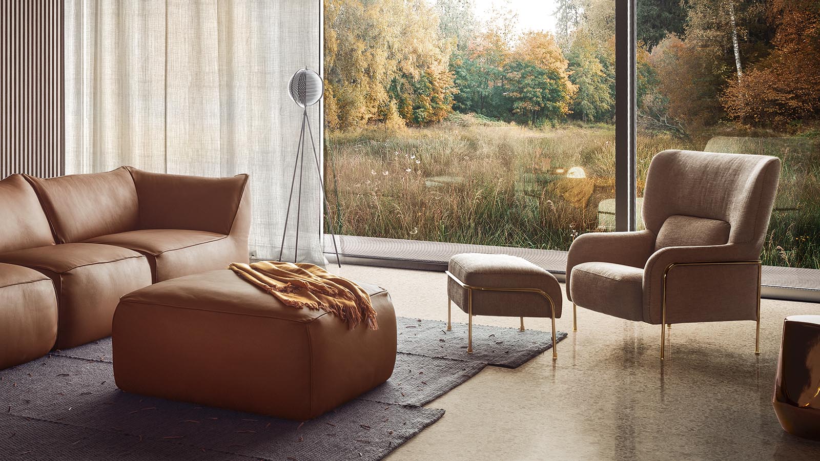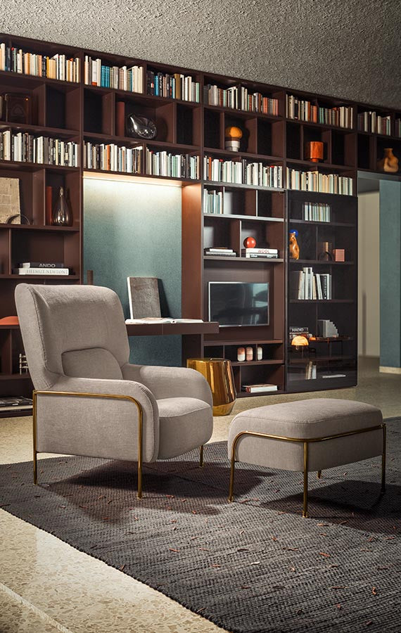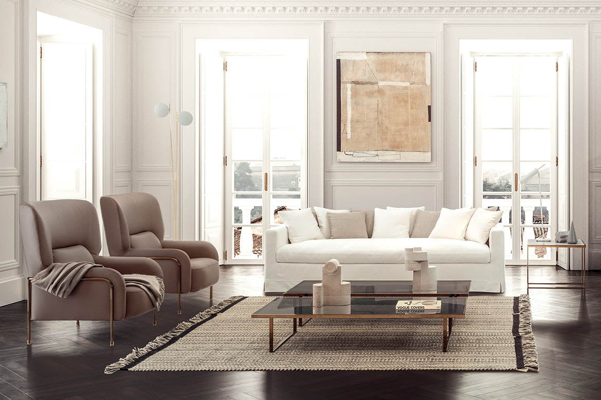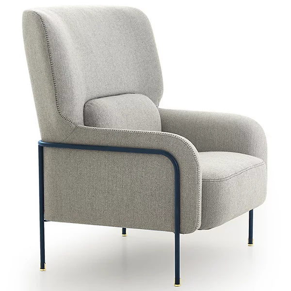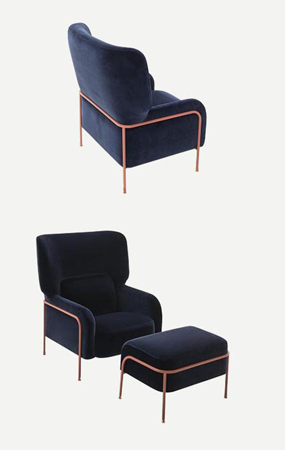 piele și țesături ale colecției Pianca, inclusiv piei artificiale. Baza este alcătuită dintr-o structură tubulară care urmează contururile fotoliului și se finisează pe pantofi eclectici din alamă. Este cu siguranta un element distinctiv si este disponibil in toate finisajele metalice si lacuri mate ale gamei. Fotoliul perfect pentru dormitor sau sufragerie, Platea este disponibil și cu un puf opțional. cusături conotative în jurul marginilor exterioare.