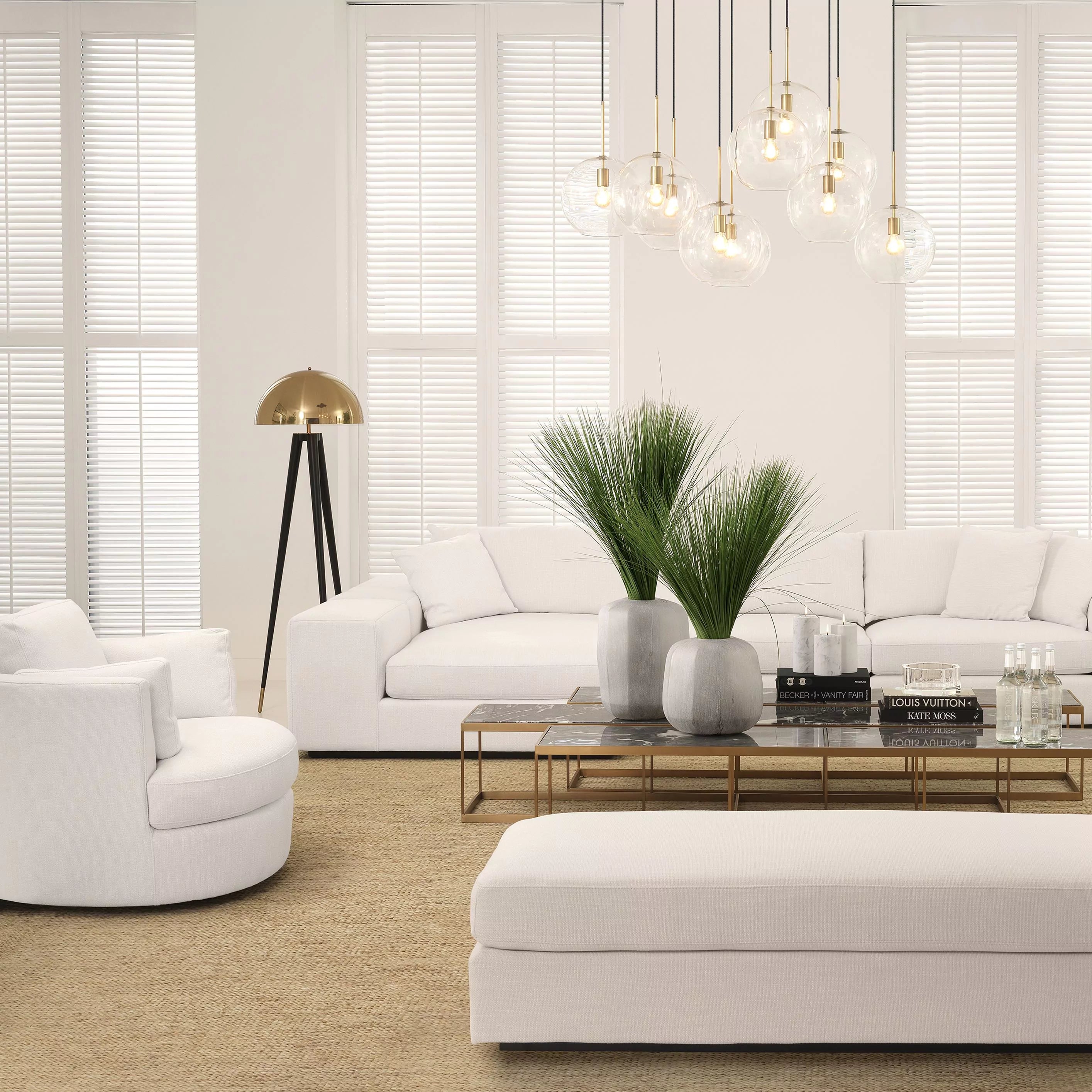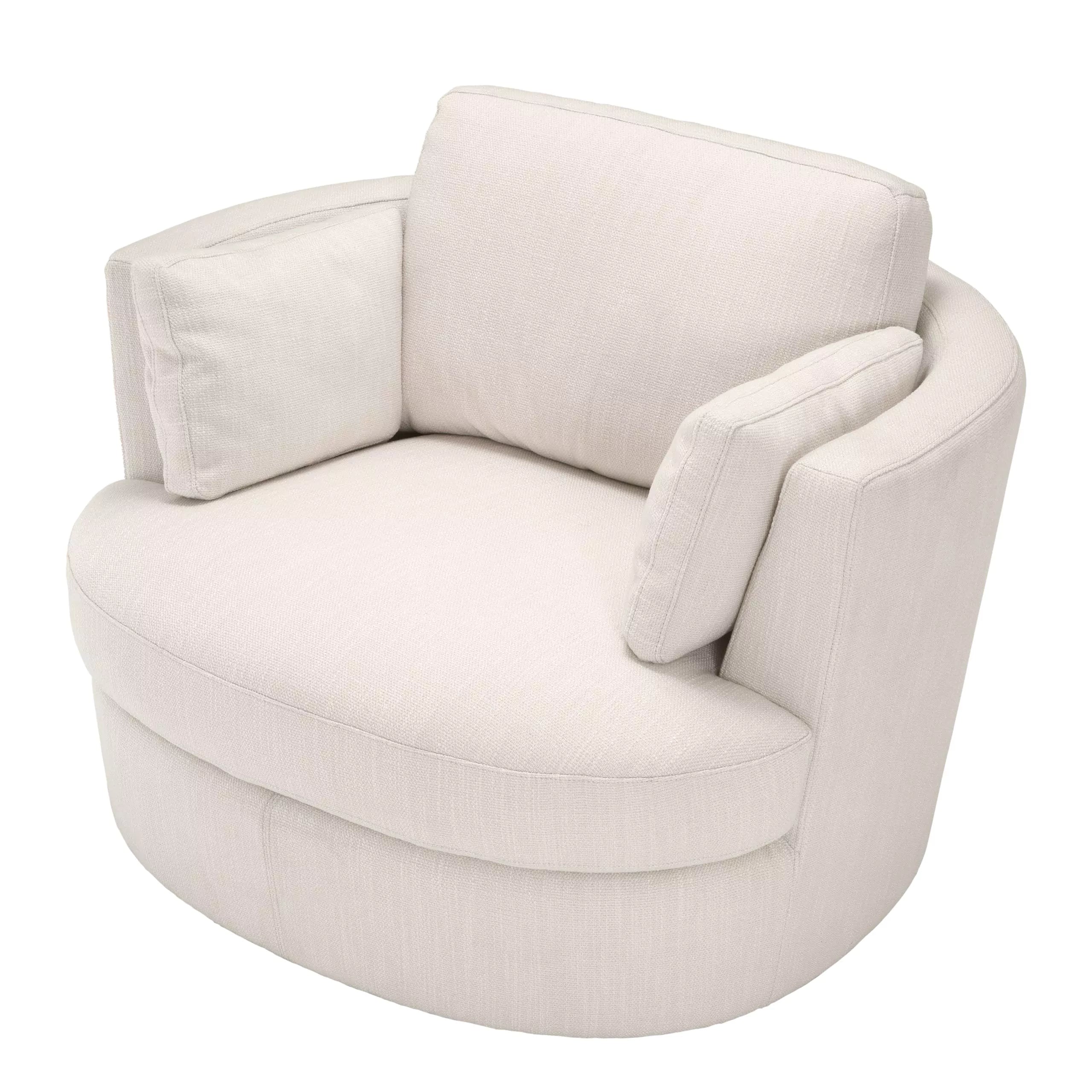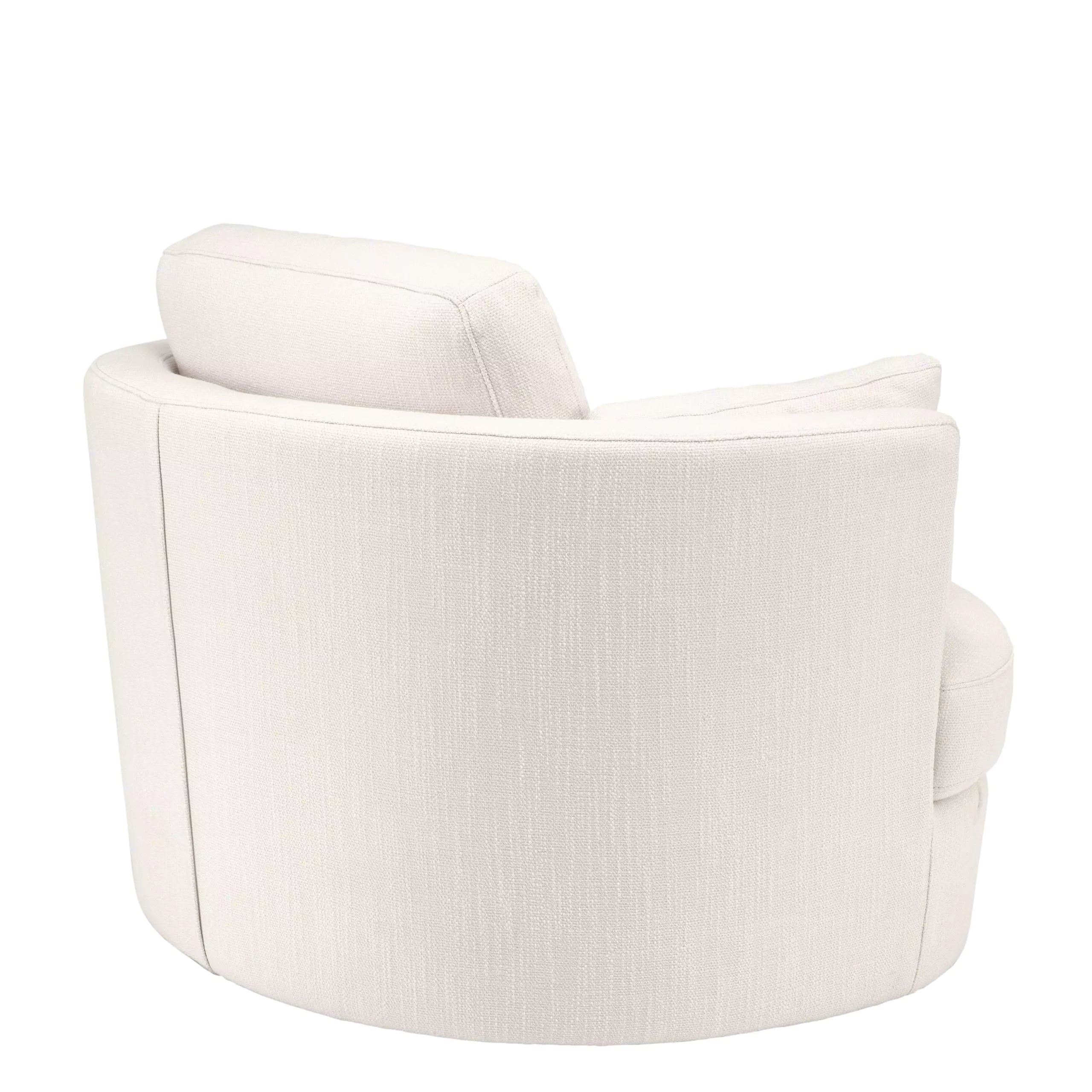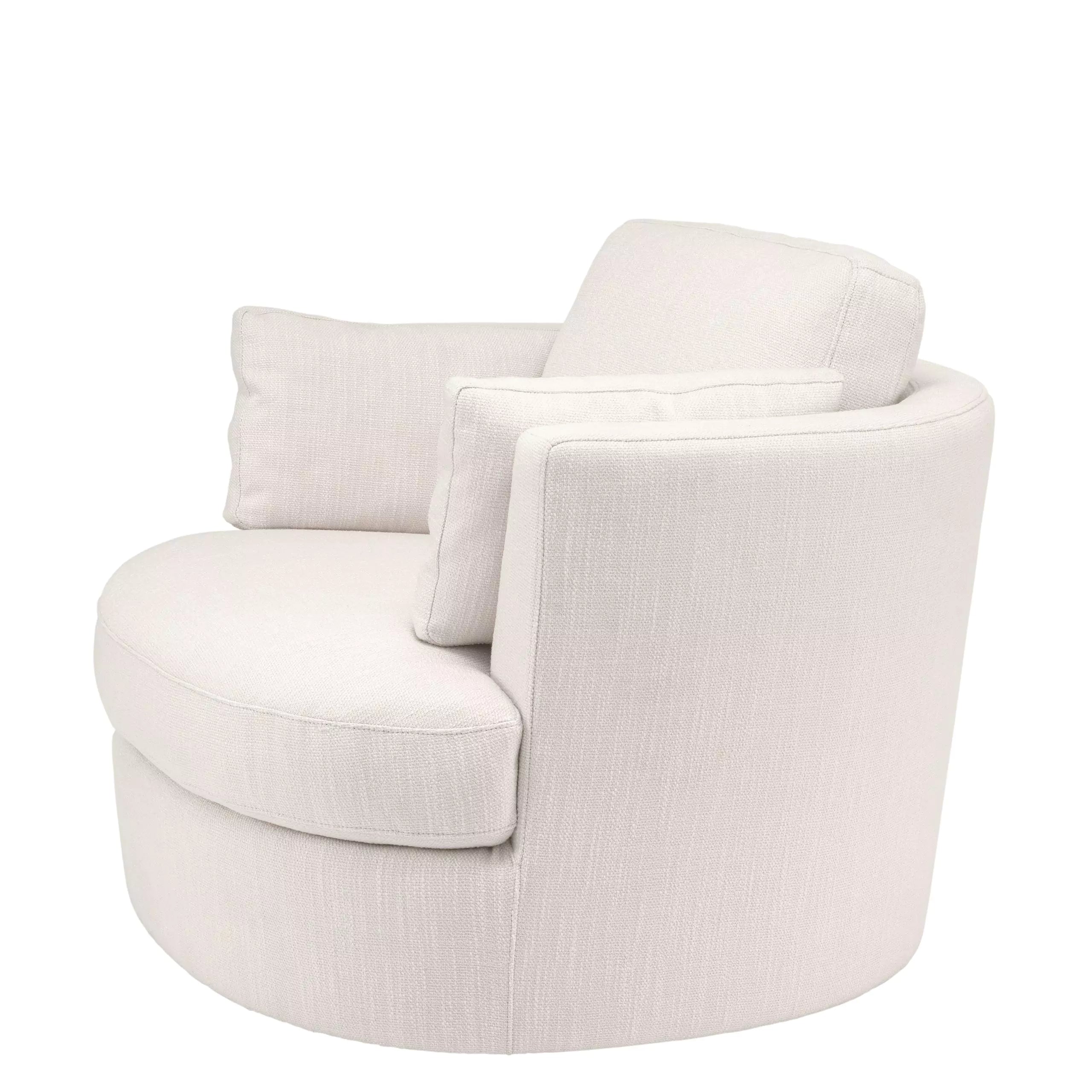 Creați o insulă de relaxare în spațiul dvs. de locuit cu scaunul rotativ Clarissa. Acest scaun club somptuos cu bază pivotantă are o tapițerie albă Avalon. Vine cu două perne pentru un plus de confort.
