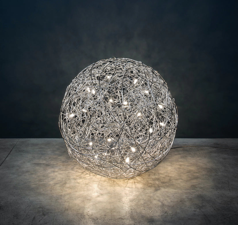 Materiale si culori - sferă din sârmă de aluminiu natural (cablu gri) sau anodizat în culoare aurie mat (cablu auriu), dimmer negru