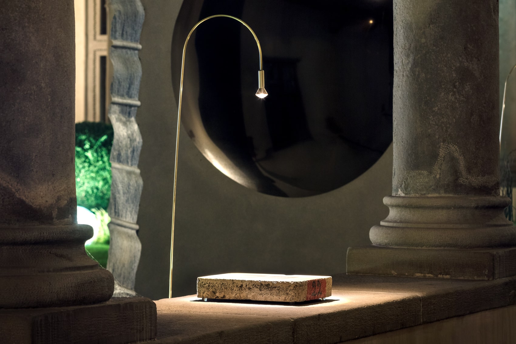Materiale: tija si detalii din alama naturala, lentila de sticla