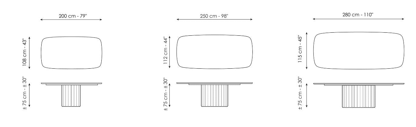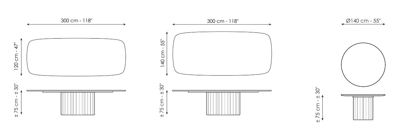 Masa Dorian, se caracterizeaza prin flexibilitate și simplitate geometrică. Stabileste o interacțiune prin contrast. Blatul mare - realizat din ceramică, marmură sau lemn - se sprijină pe o bază cu un izbitor caracter sculptural, constând dintr-un elegant și surprinzător cilindru alungit care amintește de forma unei coloane grecești.