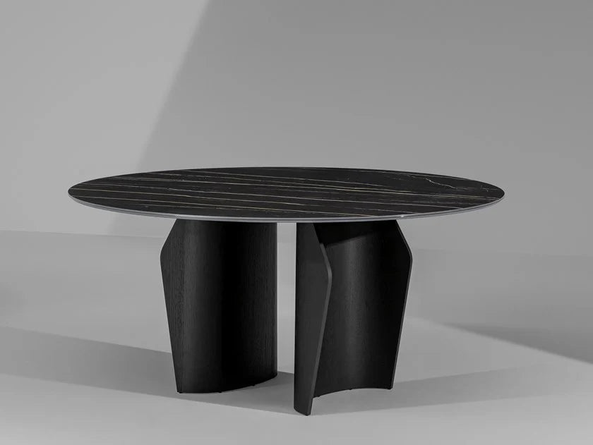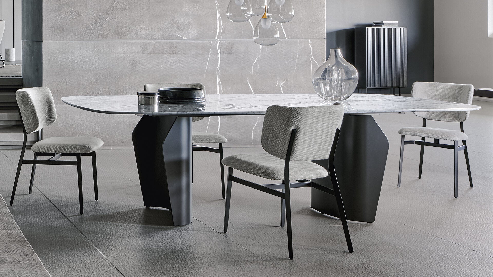 Principalele caracteristici ale mesei Flame sunt formele sale armonioase cu volume sinuoase. Partea superioară, care este vizibil suspendată, datorită poziţiei bazelor destinate să optimizeze spațiul general. Forma și funcția sunt perfect exprimate prin designul acestei mese: opțiunile extinse de personalizare vă permit să-l aranjați în funcție de gusturile, nevoile și starea de spirit a spațiului înconjurător. Topul este disponibil într-un număr de finisaje sofisticate – de la lemn la ceramică și marmură – și puteți alege dintre diverse opțiuni metalice pentru baza.