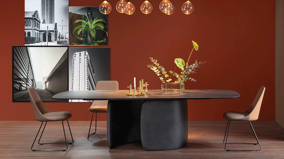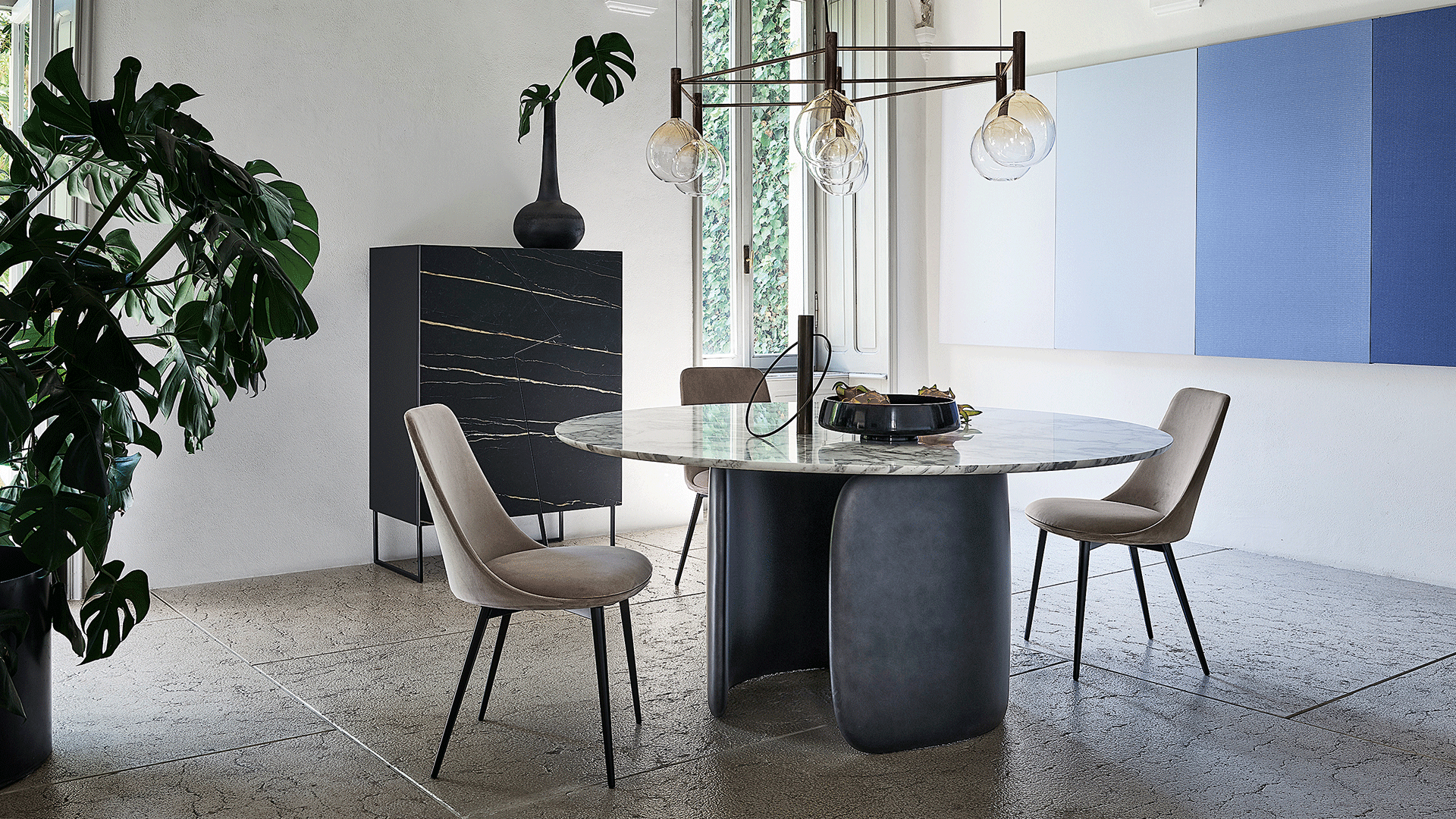 lac alb sau din diverse finisaje de lemn, sticla, ceramica sau marmura. Două forme (rotunde sau dreptunghiulare cu colturi rotunjite) Masa Mellow a fost creată pentru a fi piesa centrală a spațiului, reinterpretând și aducând un omagiu tradiționalului model din perspectiva moderna, cu dimensiuni mari, destinate pentru ocazii grozave.