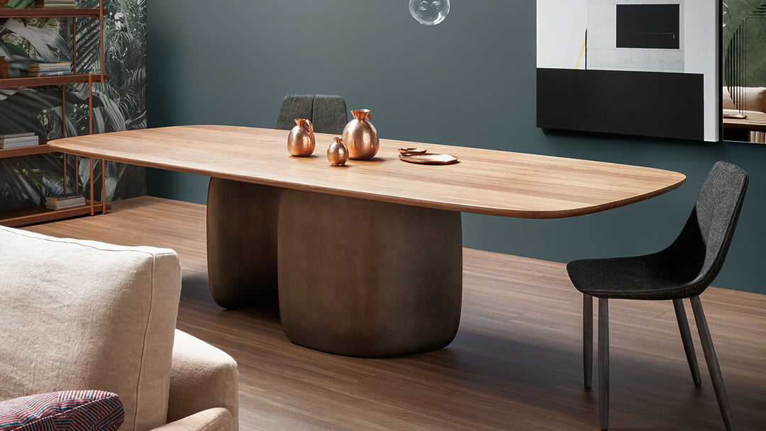 Mellow este o masă fixă, proiectată de Bartoli Design, caracterizat prin forme moi, curbilinii, impunătoare şi sculpturale, după cum indică numele său, un adjectiv englezesc care înseamnă „relaxat, liniștit”. Baza centrală originală, din plastic, este alcătuita din două elemente turnate diferite în poliuretan de înaltă densitate, care par să se țină unul pe celălalt într-o îmbrățișare strânsă. Blatul este la fel de căutat, disponibil în mat