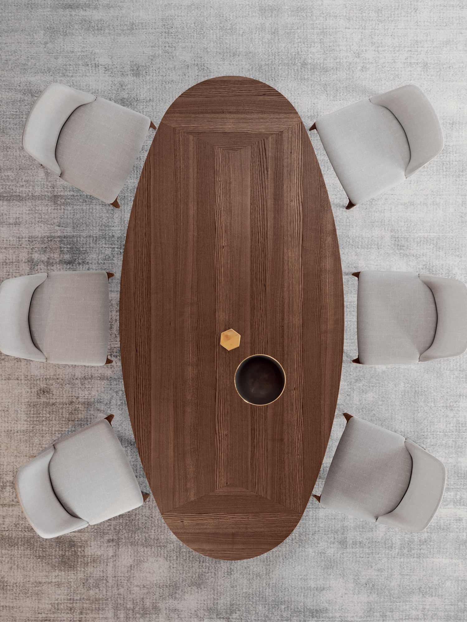 Masa Moor este o poveste dinamică jucată pe contraste, liniile fluide și moi ale blaturilor