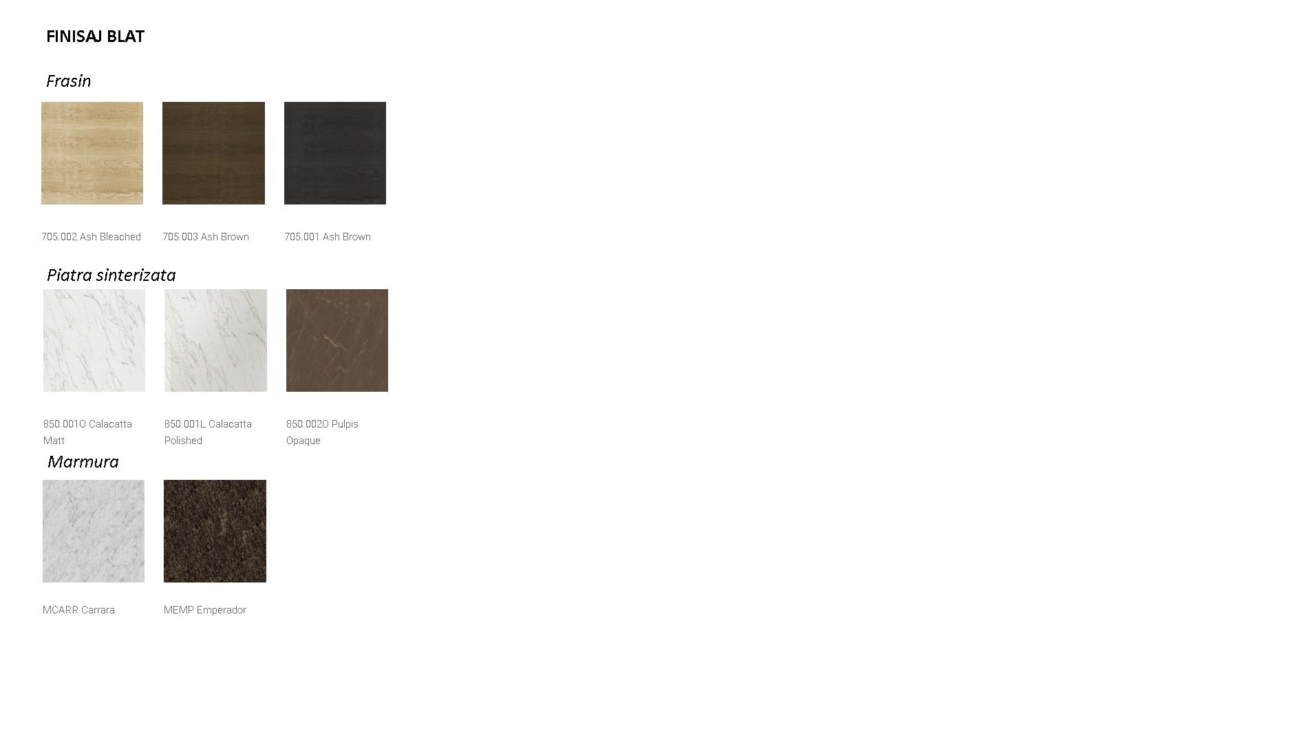 Blat fix caracterizat prin 7 configurații diferite și finisaje diferite. Prezentat în combinații