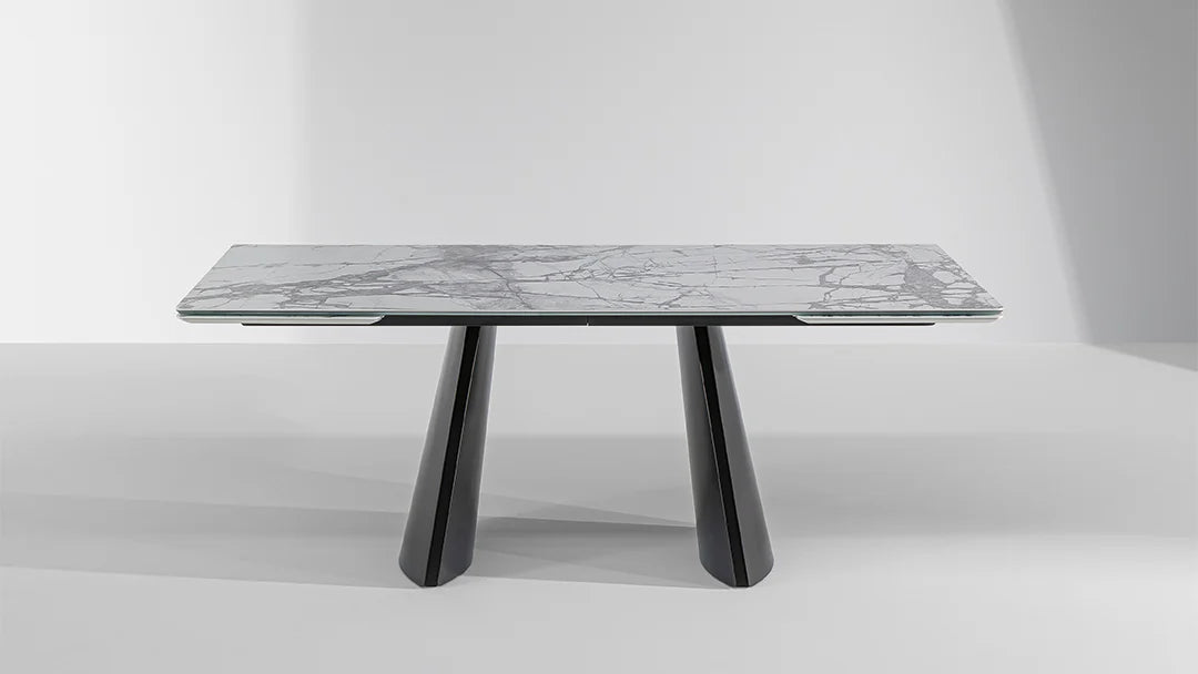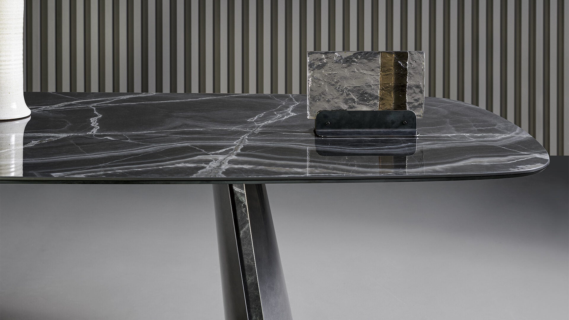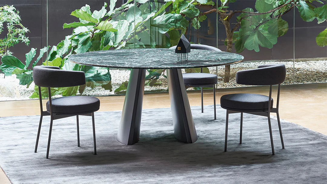 de Marconato & Zappa reiese cu putere în varianta care oferă un finisaj dintr-un singur material atât pentru partea superioară, cât și pentru cea inserțiile decorative ale picioarelor.