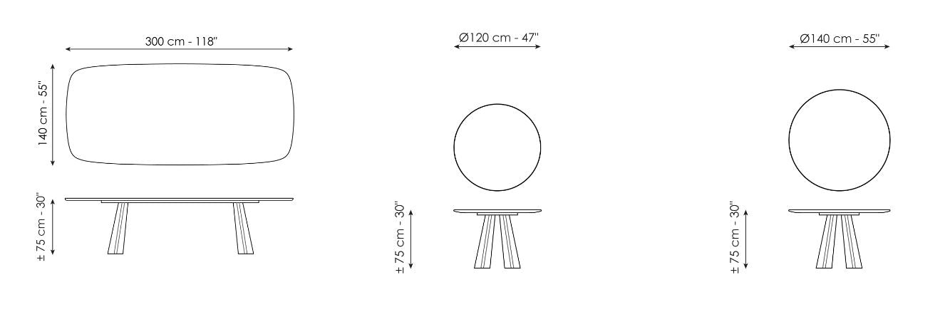 Inspirat de arhitectura șintoismului tradițional japonez, care dau naștere denumirii Torii. Se remarcă prin calitățile „tectonice” ale bazei, compusă din două elemente metalice uşor înclinate. Designul elegant este completat de blatul riguros care este disponibil în lemn, ceramică sau marmură. Calitățile formale ale proiectului conceput