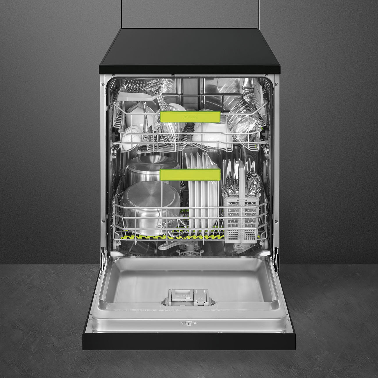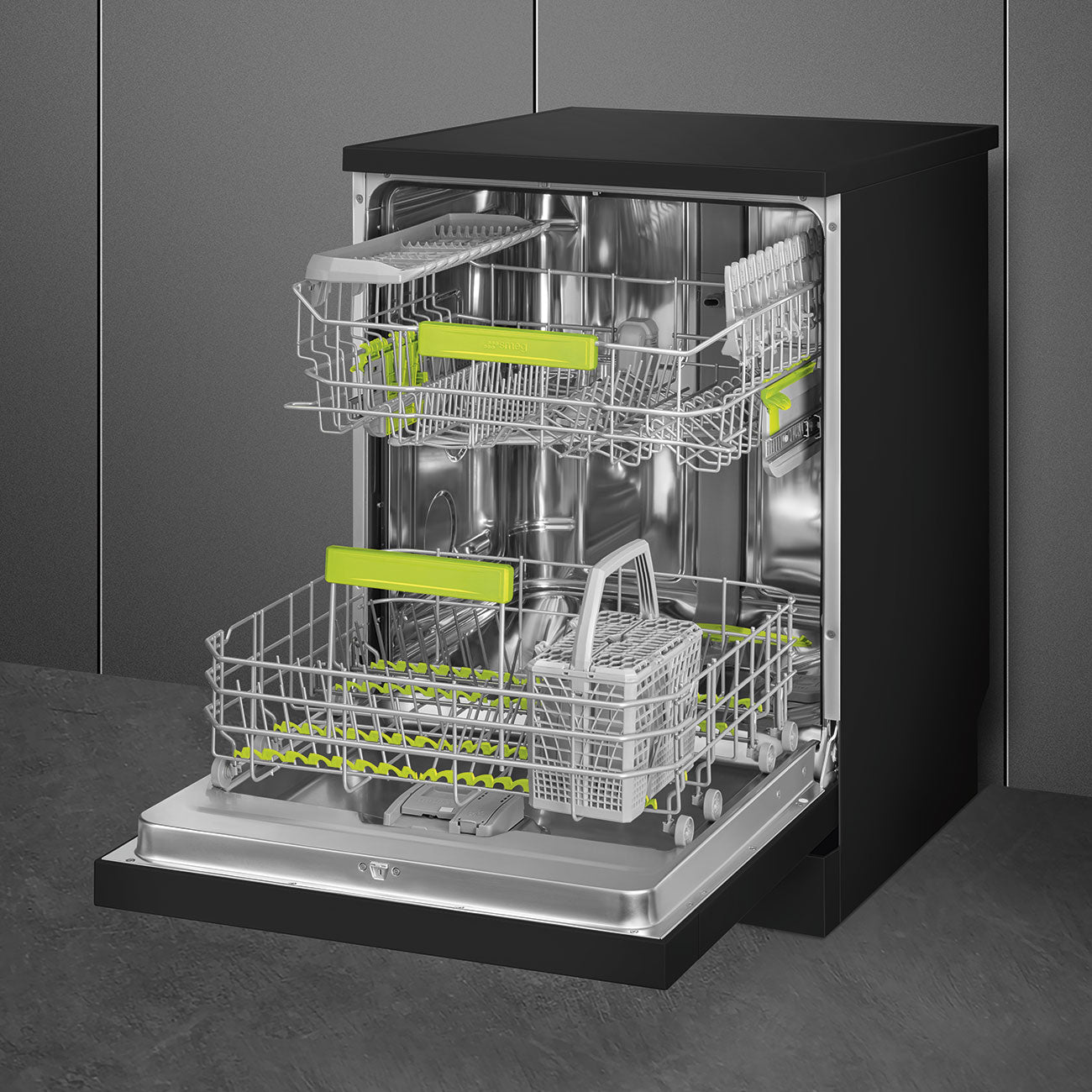 Orbital wash system distributes water evenly throughout the 60cm dishwasher cavity, directing water with precision to ensure an excellent wash. Total Acquastop: In addition to the partial Acquastop protection present in all Smeg dishwashers, some models have an electronic device fitted to the water intake hose, which monitors water levels in the machine, detects leaks in the hose and switches off the water supply immediately when necessary. The work aimed at continuous improvement has allowed the creation of the second generation of the Inverter motor 2.0, characterised by greater efficiency and durability over time,