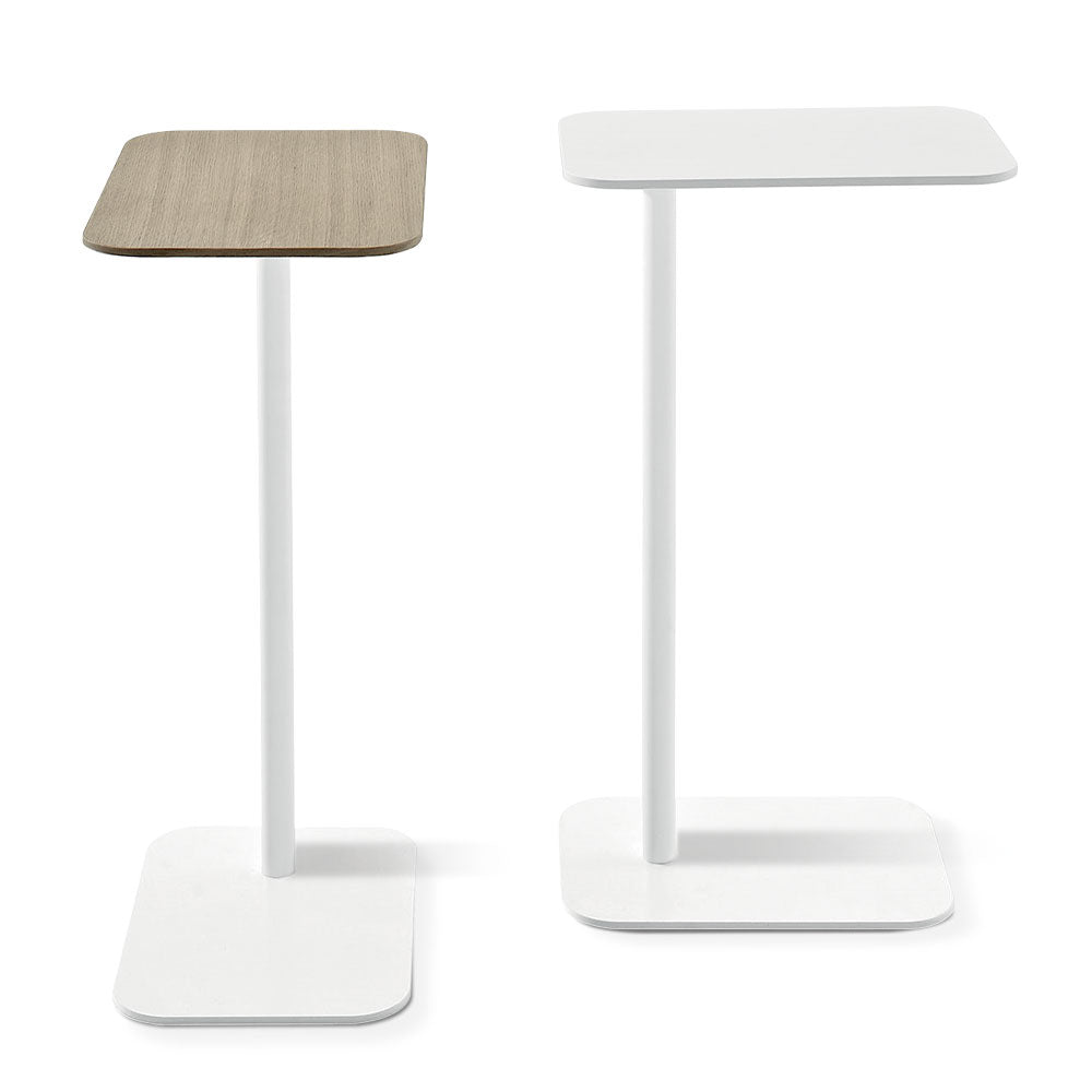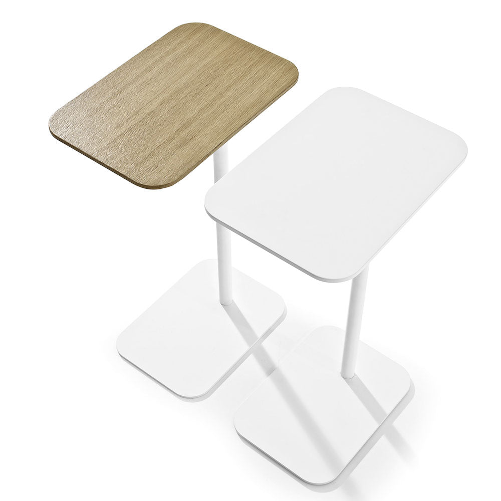 Masuta de cafea cu blat vopsit mat sau laminat in culoarea stejarului si suport vopsit alb mat.