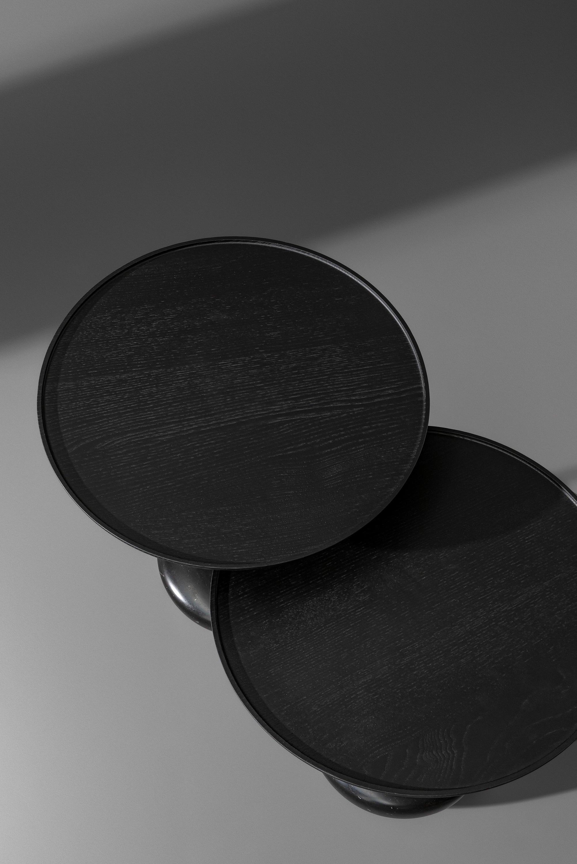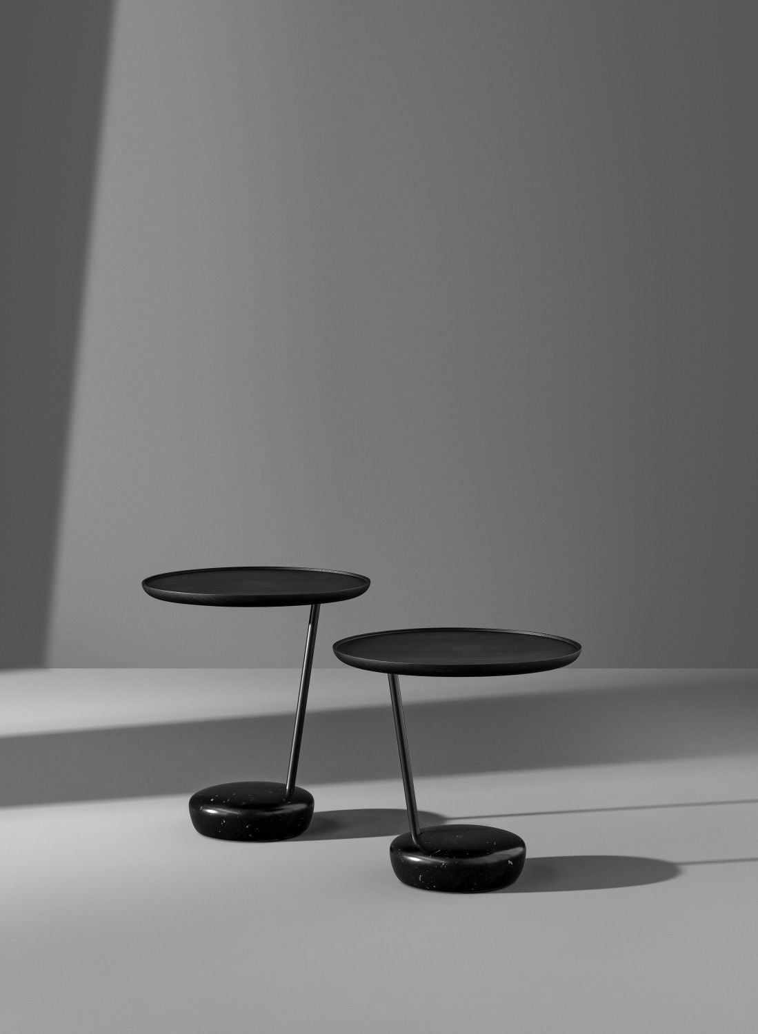 baza impunătoare, corpul elegant și discul care formează masa, subliniat prin asortarea elegantă a diferitelor materiale.