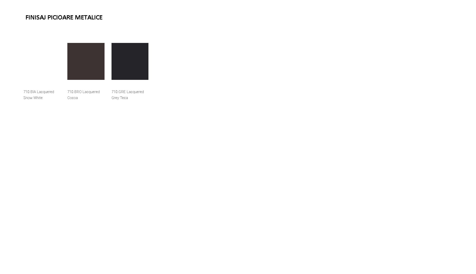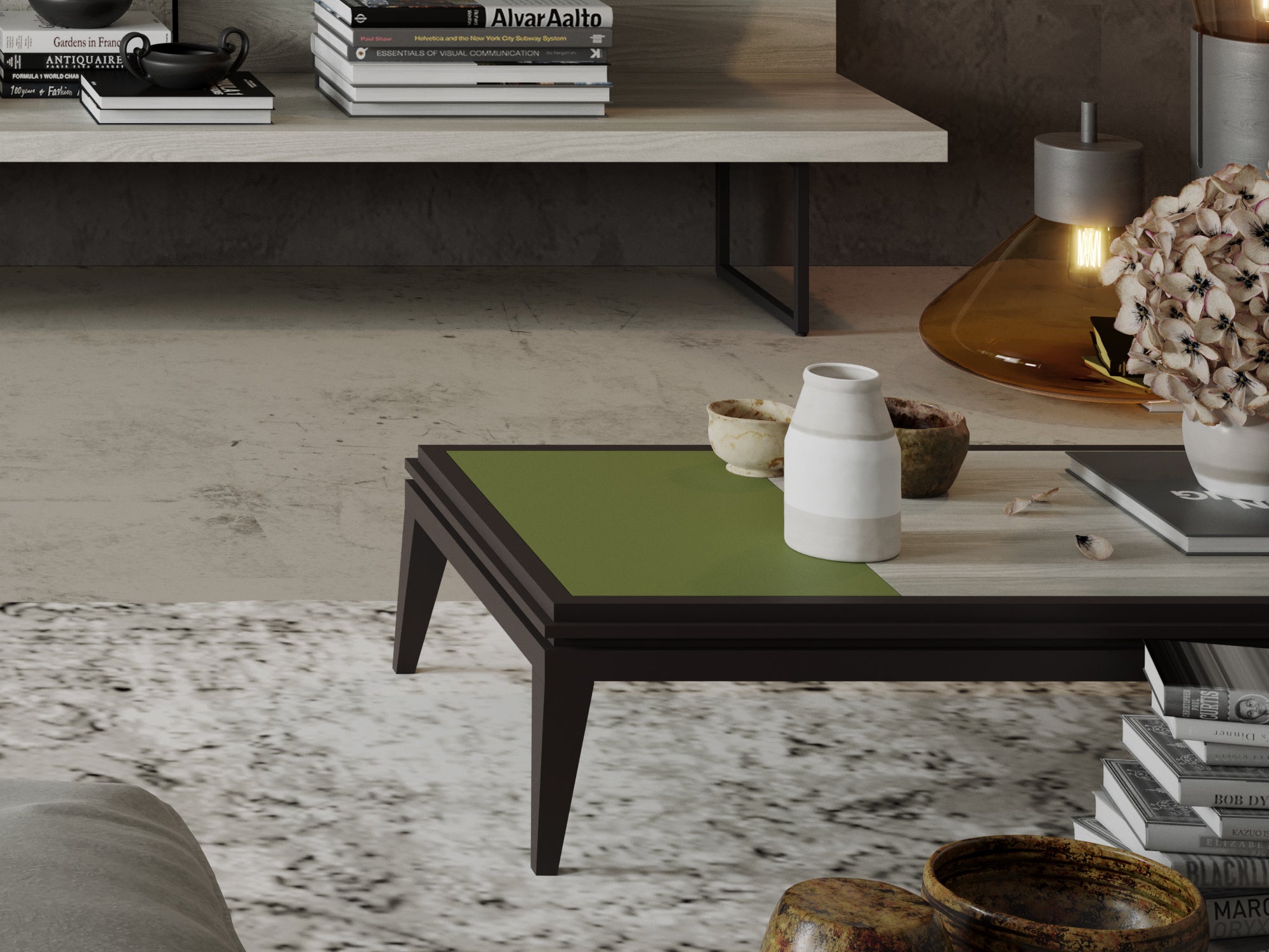 Masuta joasa cu structura metalica caracterizata prin plinta Nice, cu picioare conice si cadru superior realizat din tuburi metalice cu inaltimi diferite, care da o nota de rafinament pe fiecare parte. Tuburile sunt vopsite cu pulbere epoxidica. Disponibila în culorile standard și in culorile de referință cu un cost suplimentar. Blaturi superioare cu diferite lățimi introduse în cadrul metalic superior. Picioarele reglabile sunt întotdeauna integrate în partea inferioară a cadrului.