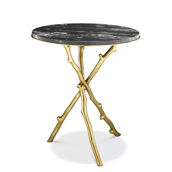 Creați o atmosferă naturală în casa dumneavoastră cu măsuța Westchester. Având o bază de ramură de copac artificială finisată auriu și un blat rotund de marmură neagră, această masă de accent uimitoare va atrage privirea în interiorul tău.