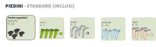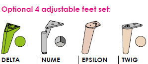 BOLD are picioare standard reglabile de la 0,7 cm înălțime, dar pot fi personalizate alegând între 5 tipuri diferite de picioare: