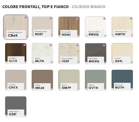 Epsilon h.15,5cm. in culorile: cires alb, stejar dorian, nuc auriu, alb mat, stejar alb, lemn natural, eucalipt, malta, nisip vesuv, gri metalic, desert, canepa, moka, domy, agave, albastru opal, gri titan, roz pudra , galben coral , caise si sofran