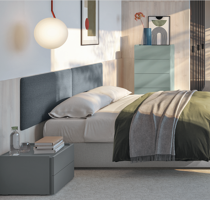 Comodă și grup noptiere  Tower ,elegantă și liniară.