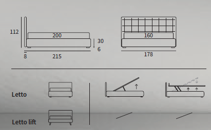 Dimensiuni ext : L.108/138/158/178/198 cm x P.205/215 cm H.36 cu spatar H.112 cm