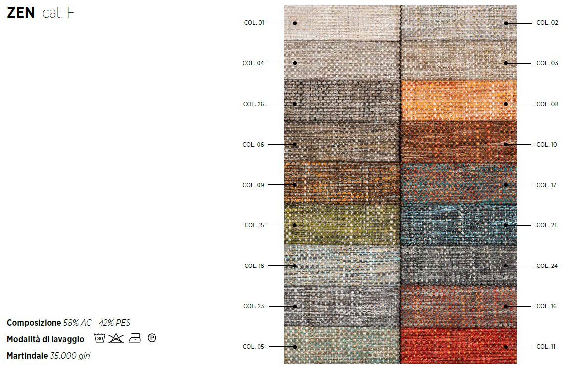 pentru cusături contrastante poate fi aleasa consultând filele din piele ecologică Sirio și Pegaso (acesta din urma doar pentru varianta de culoare 18) tinand cont de eventualele diferente de nuanta.