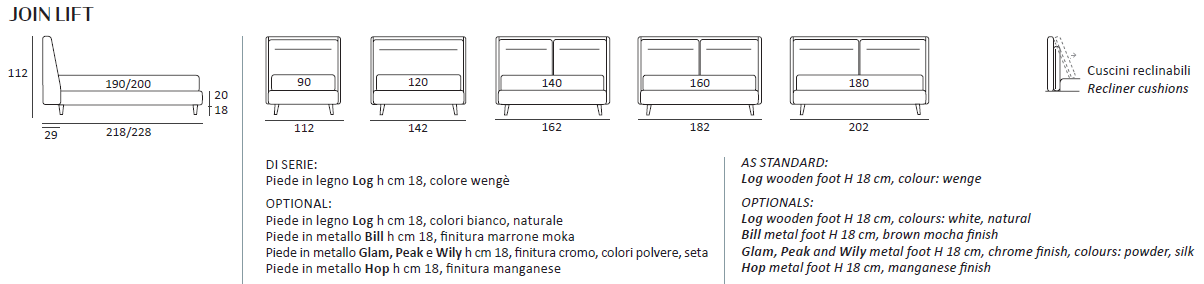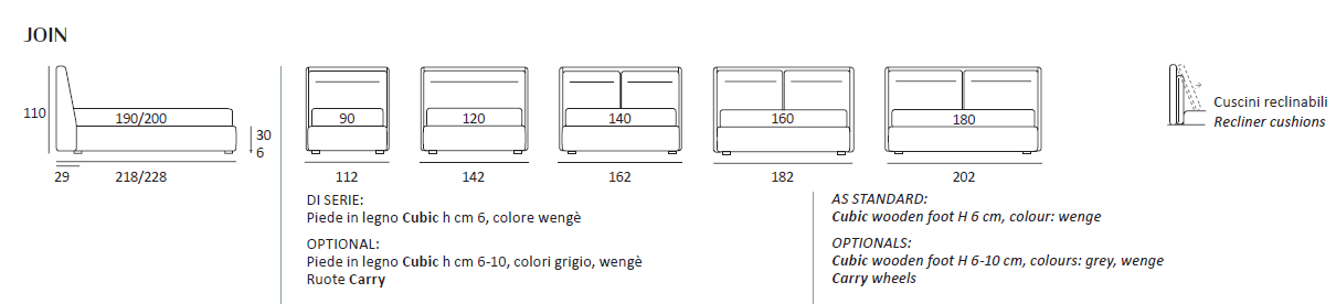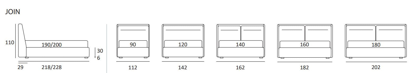 Dimensiuni ext :L.112/142/162/182/202 cm x P.218/228 x H.36 cu spatar H.110 cm