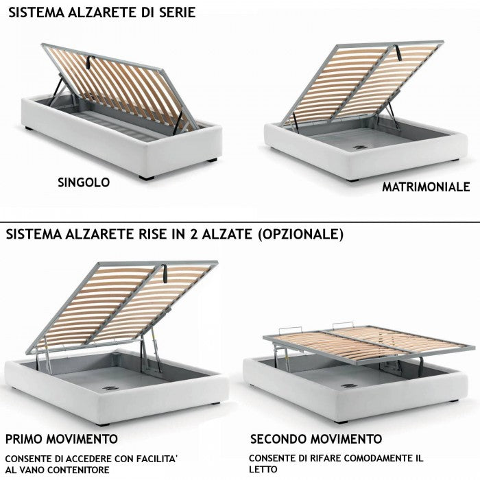 Un pat matrimonial modern, disponibil cu si fara spatiu de depozitare. Ca si finisaje putem alege dintr-o gama variata de culori si materiale. Patul este disponibil în versiuni de material textil și piele ecologică, husă complet detașabilă. Culoarea firului
