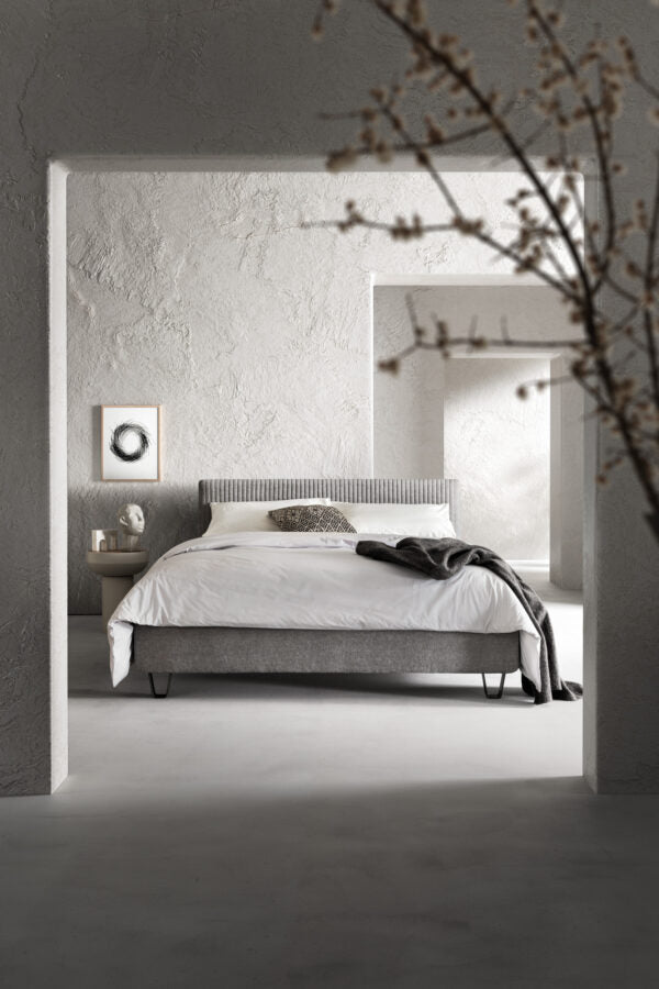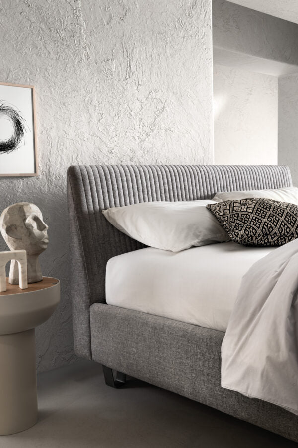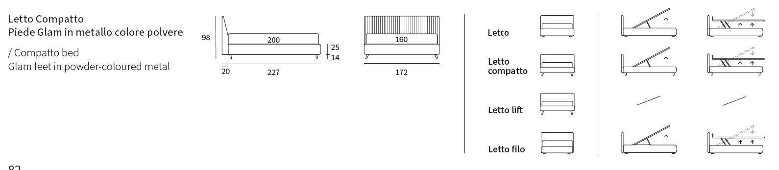 Finisaje disponibile , tesatura si ecopiele. Este in totalitate dehusabil pentru variantele din tesatura si partial pentru cele din piele/ecopiele. Structura patului este din pal iar somiera este din lemn stratificat.