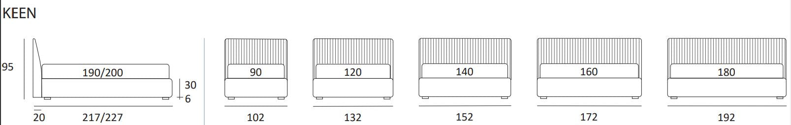 Dimensiuni ext :L.217/227 cm x l.102/132/152/172/192 cm x H.36 cu spatar H.de 95 cm