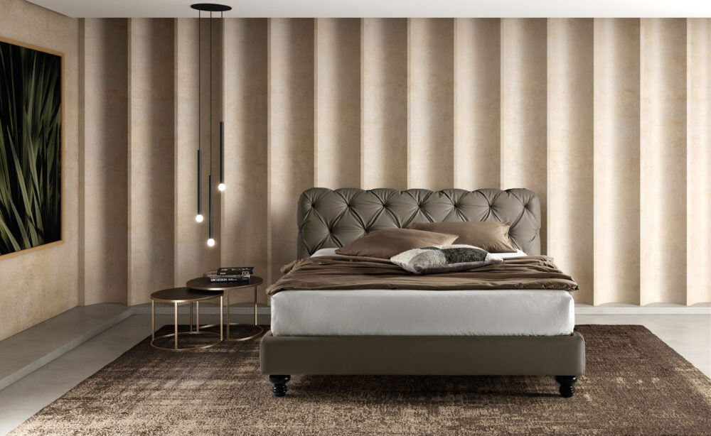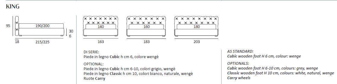 Patul King este un pat confortabil cu somiera inclusa, structura patului este alcatuita din lemn stratificat, husa este detasabila, picioarele disponibile in mai multe finisaje si materiale.