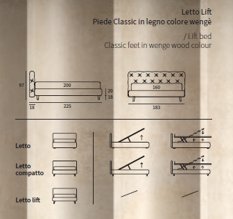 Este partial dehusabil si se poate comanda in varianta cu tesatura sau piele ecologica.Patul poate avea si spatiu de depozitare.
