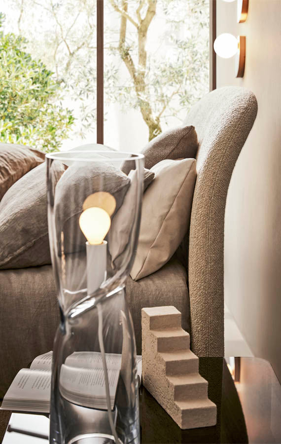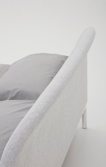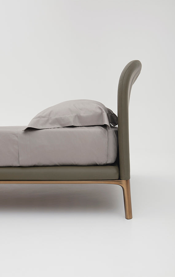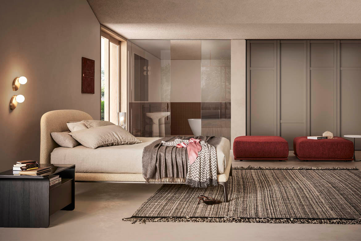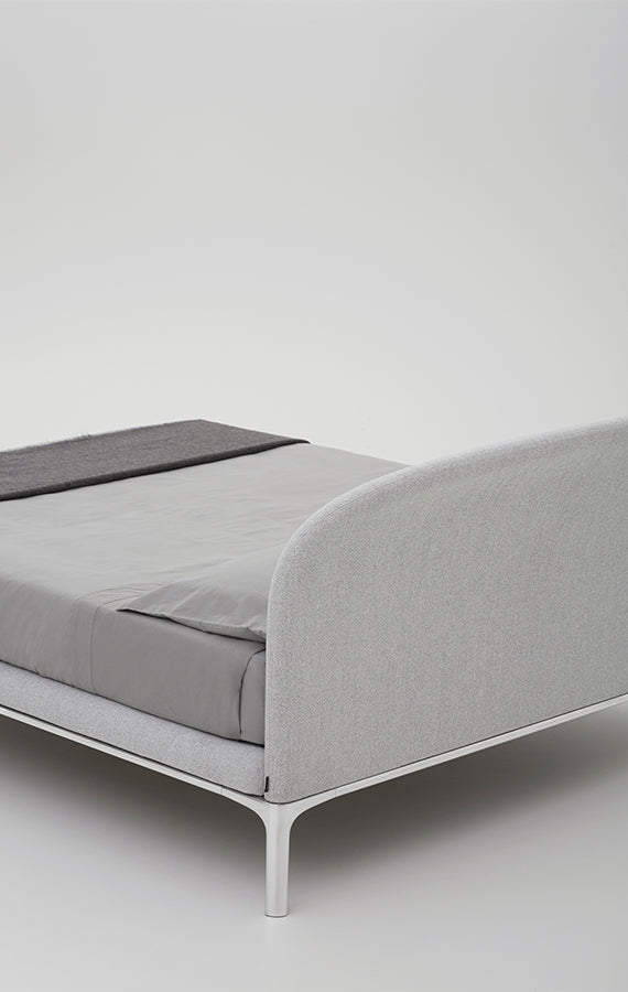 Stil subestimat, contururi primitoare, combinate blând. Rada este un pat cu profil curgător, intim și delicat. Tăblia se curbează ușor înapoi, invitând la relaxare totală, cedând formei sale. Patul pare să provină dintr-o singură lovitură de stilou, curbele curgând perfect în picioarele metalice, într-un contrast de materiale extrem de delicat, dar natural. Tapițeria este ușoară și măsurată cu atenție, produsul stilului de design al lui Philippe Tabet și mâna pricepută a maestrului meșter care a creat-o. Un cadru metalic se combina cu o baza din aliaj de aluminiu, cu finisaj metalic sau mat, in alb-negru. Tăblia, disponibilă în două înălțimi diferite, este realizată din spumă poliuretanică cu husă fixă din material textil sau piele.