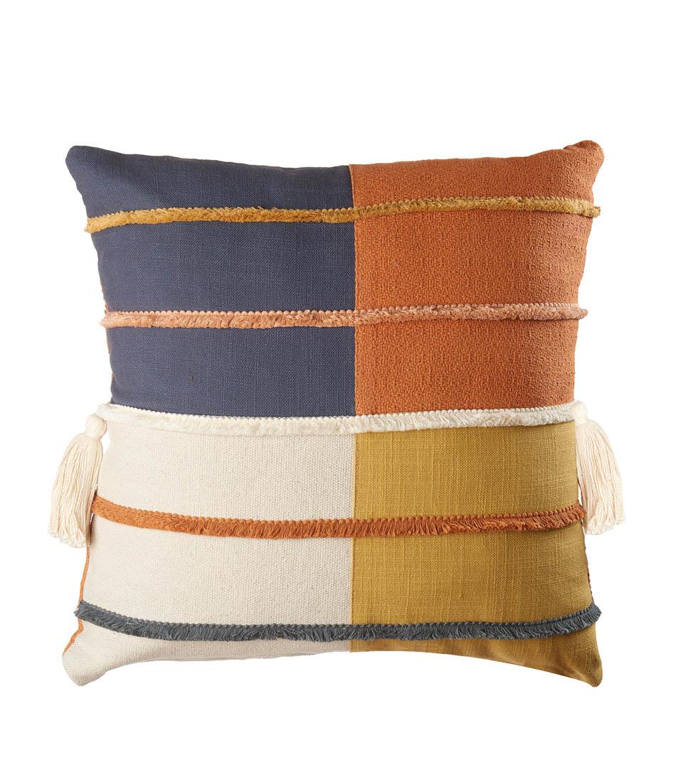 Perna din bumbac colorat cu aplicatii decorative. Cu tonurile sale puternice care amintesc de nuanțele naturale ale pământului, este detaliul de design perfect pentru a completa un decor modern primitor. Il poti combina cu alte perne in aceleasi nuante din lumea contemporana. Dehusabil.