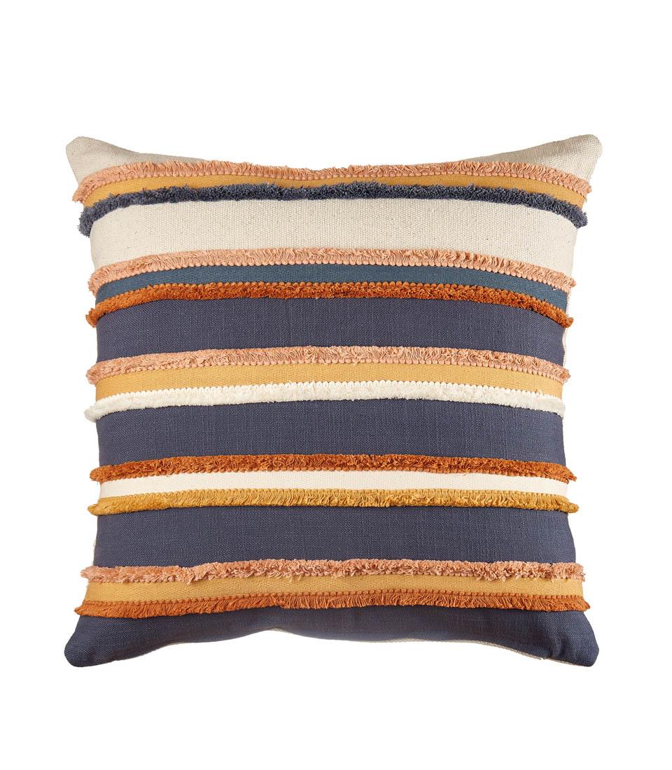 Perna cu aplicatii din tesatura intens colorata. Perfect pentru a se combina cu alte perne din lumea contemporană pentru a crea atmosfere de eleganță modernă. Dehusabil.