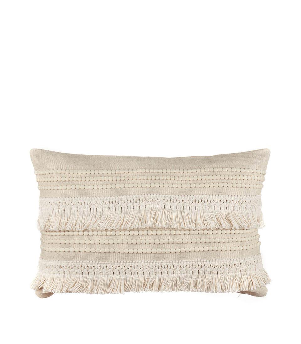 Perna dreptunghiulara bej din bumbac pur cu aplicatii ton pe ton si broderie. Țesăturile sale complet naturale fac din aceasta o piesă de mobilier delicată pentru a vă decora camera de zi.